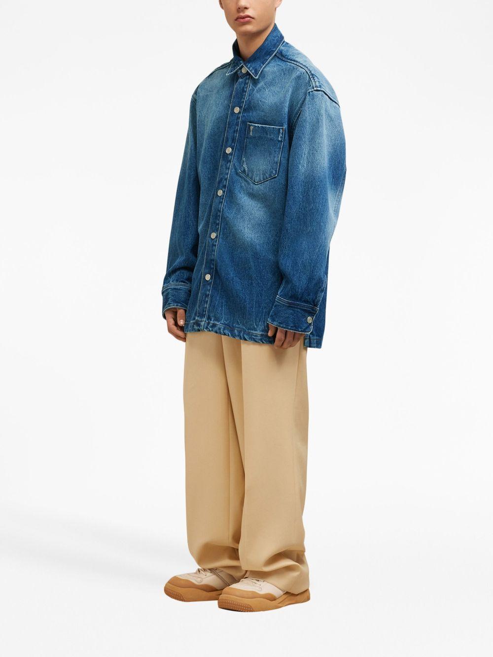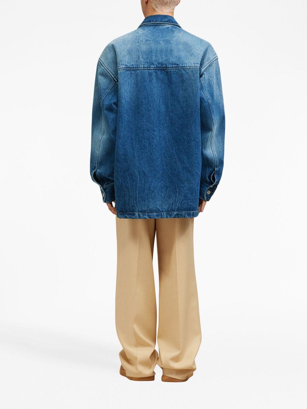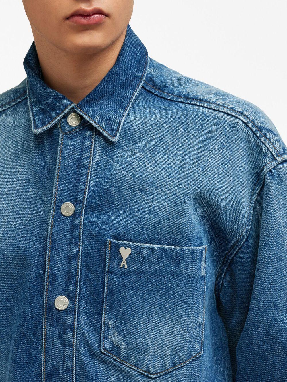 AMI Paris Ami de Coeur-plaque denim jacket | Blue | blue | cotton | denim | signature Ami de Coeur monogram motif | silver-tone logo plaque | classic collar | front button fastening | long sleeves | buttoned cuffs | chest patch pocket | straight hem | When buying this unisex item, keep in mind that it is graded in standard men's sizing. | Cotton | Denim Jackets | Jackets | Clothing | Men | Denim Jackets | Jackets | Clothing | Women