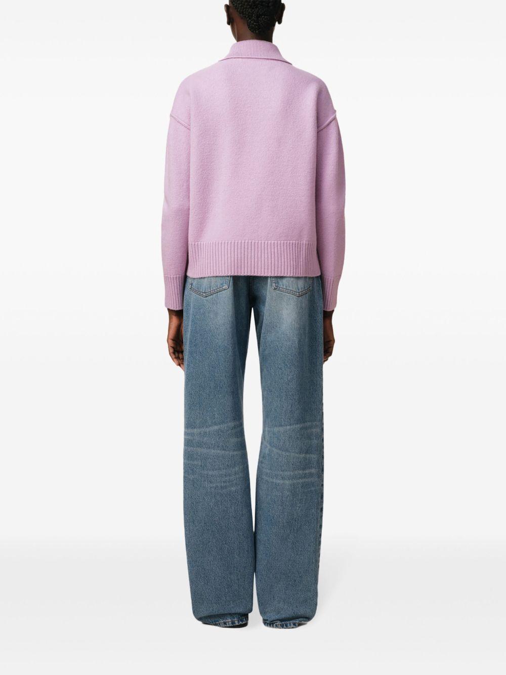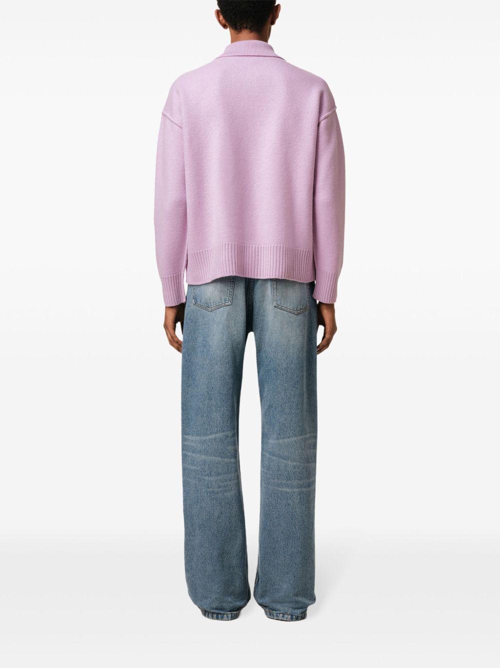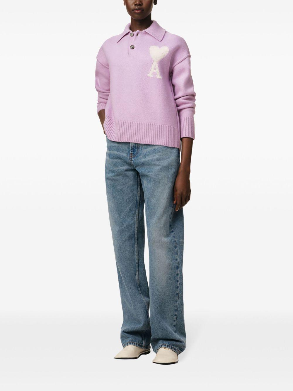 AMI Paris Ami de Coeur polo shirt | Pink | lilac purple | short front button fastening | long sleeves | ribbed cuffs and hem | When buying this unisex item, keep in mind that it is graded in standard men's sizing. | Wool | Polo Tops | Tops | Clothing | Women | Polo Shirts | Clothing | Men