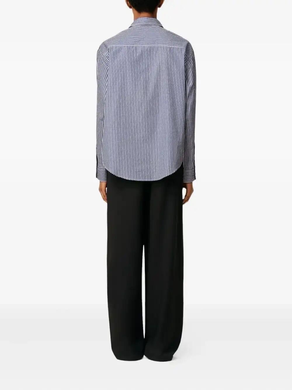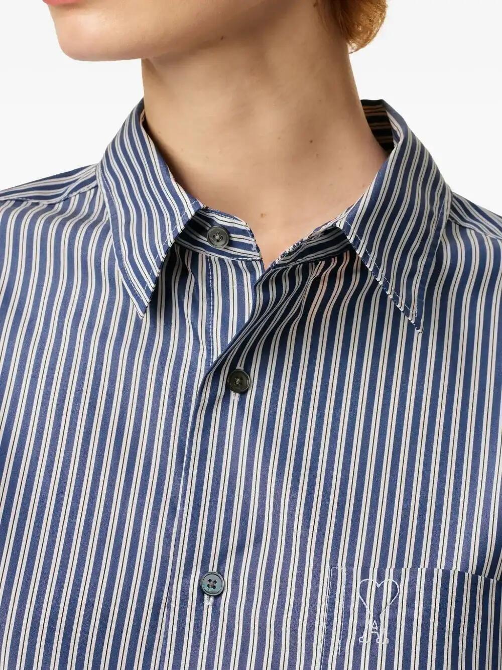 AMI Paris Ami de Coeur striped shirt | Blue | blue/white/black | poplin texture | striped pattern | classic collar | front button fastening | mother-of-pearl buttons | embroidered Ami de Coeur logo at the chest | straight hem | Cotton | Shirts | Clothing | Men | Shirts | Tops | Clothing | Women