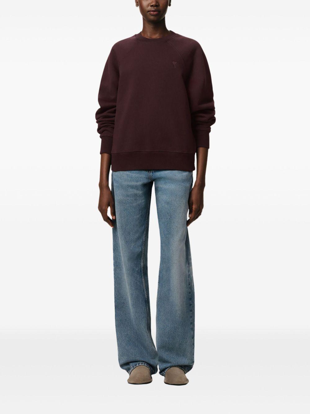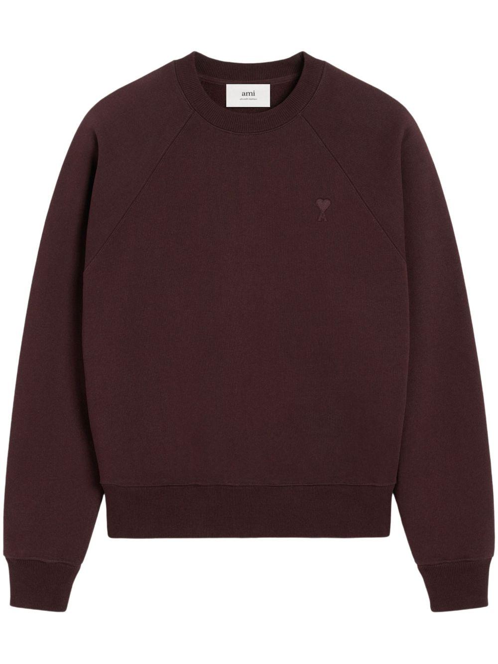 AMI Paris Ami de Coeur sweatshirt | Purple | dark purple | crew neck | long sleeves | straight hem | When buying this unisex item, keep in mind that it is graded in standard men's sizing. | Cotton | Sweaters | Tops | Clothing | Women | Sweatshirts | Sweatshirts & Knitwear | Clothing | Men