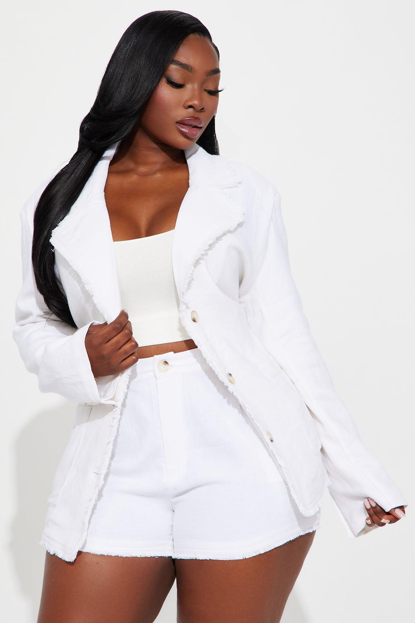 Amina Oversized Linen Blazer - White Female