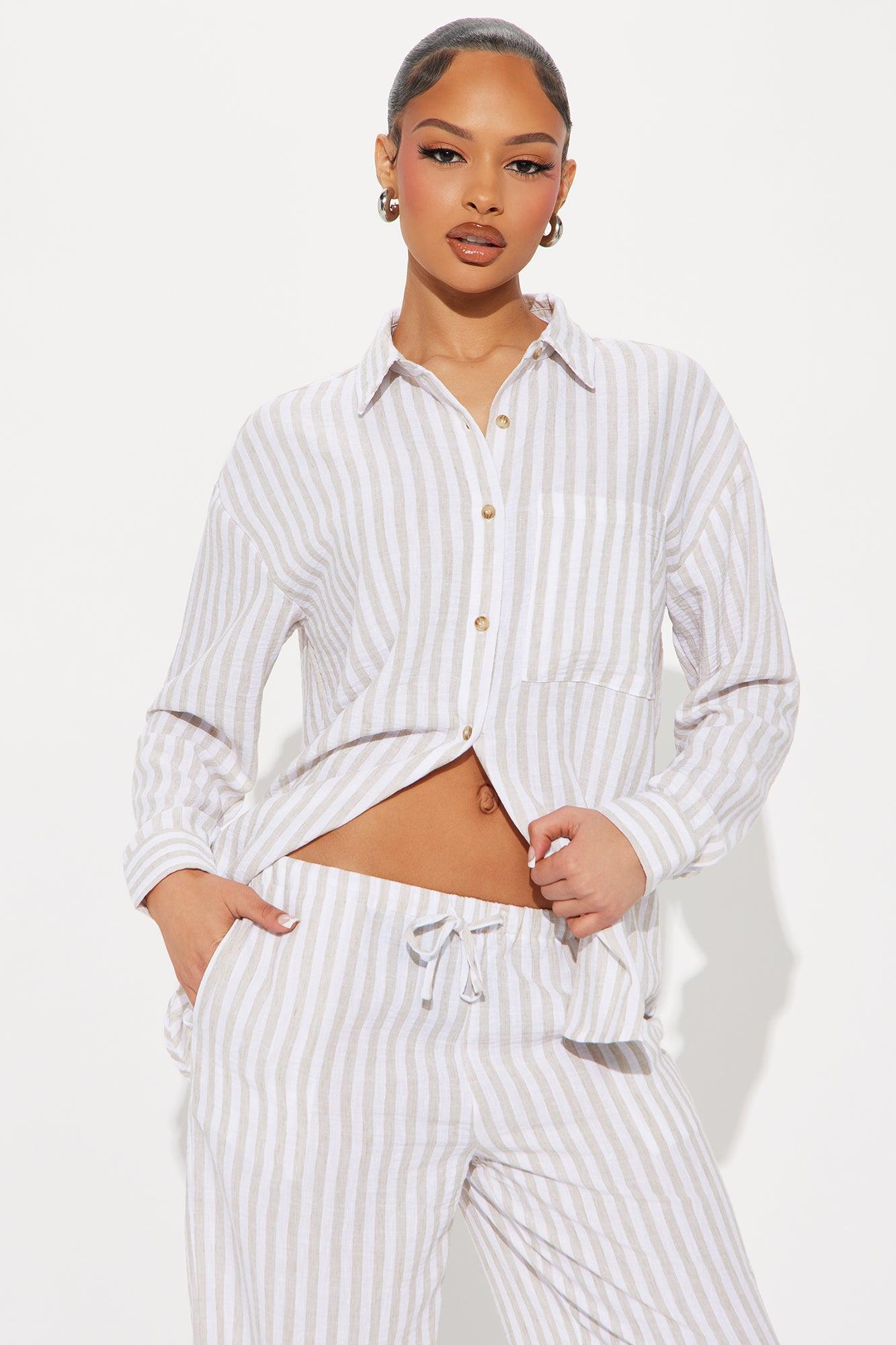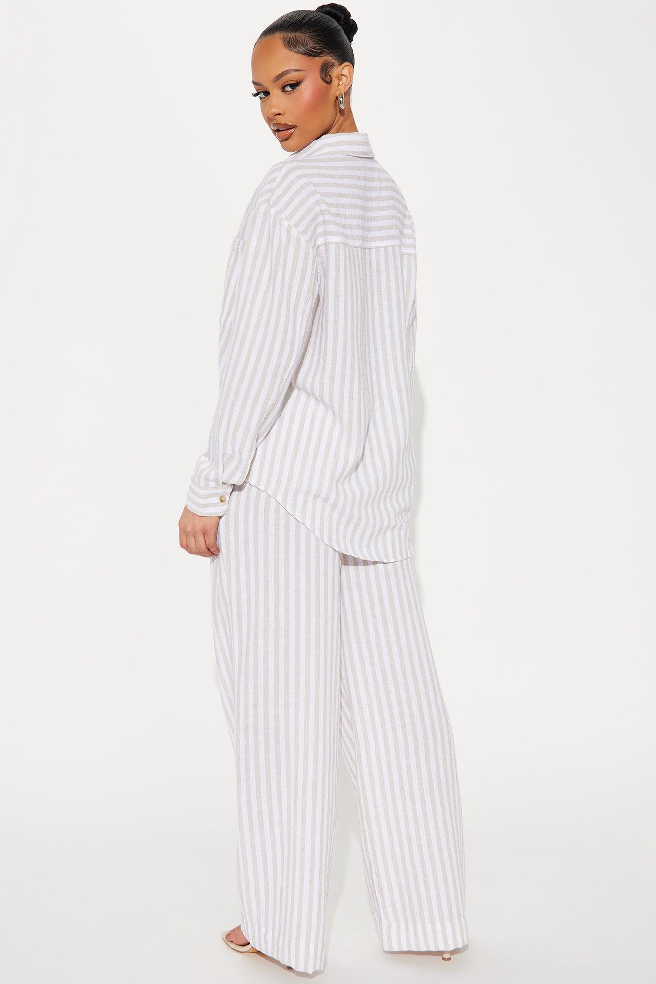 Amina Striped Linen Pant Set - Taupe