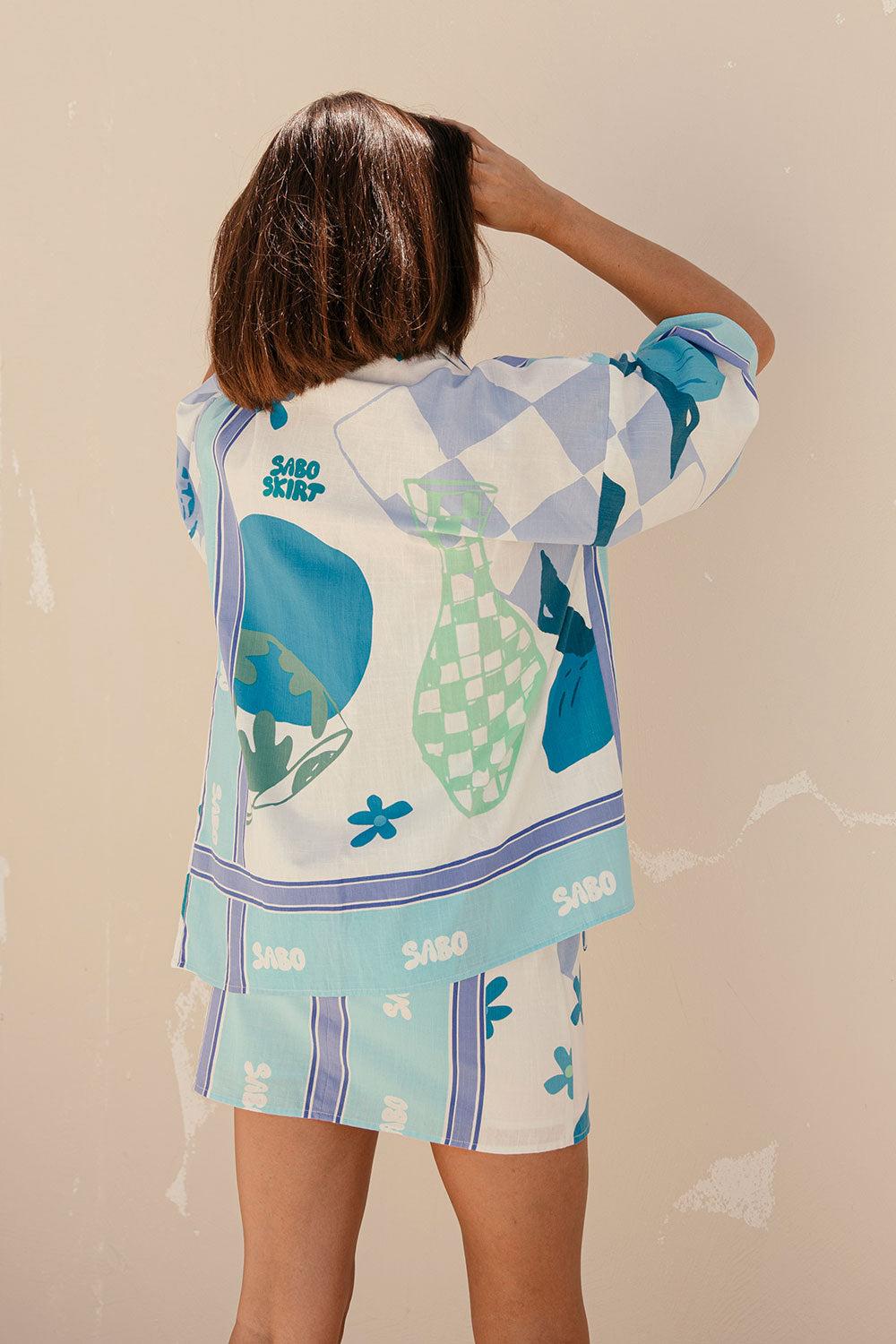 Introducing our vacation inspired Scarf Azure print! The Amira Top is made from a high quality cotton slub fabric and features a relaxed fit, collar and buttons down centre front. Wear it open over the Amira Dress! Designed exclusively by Sabo.