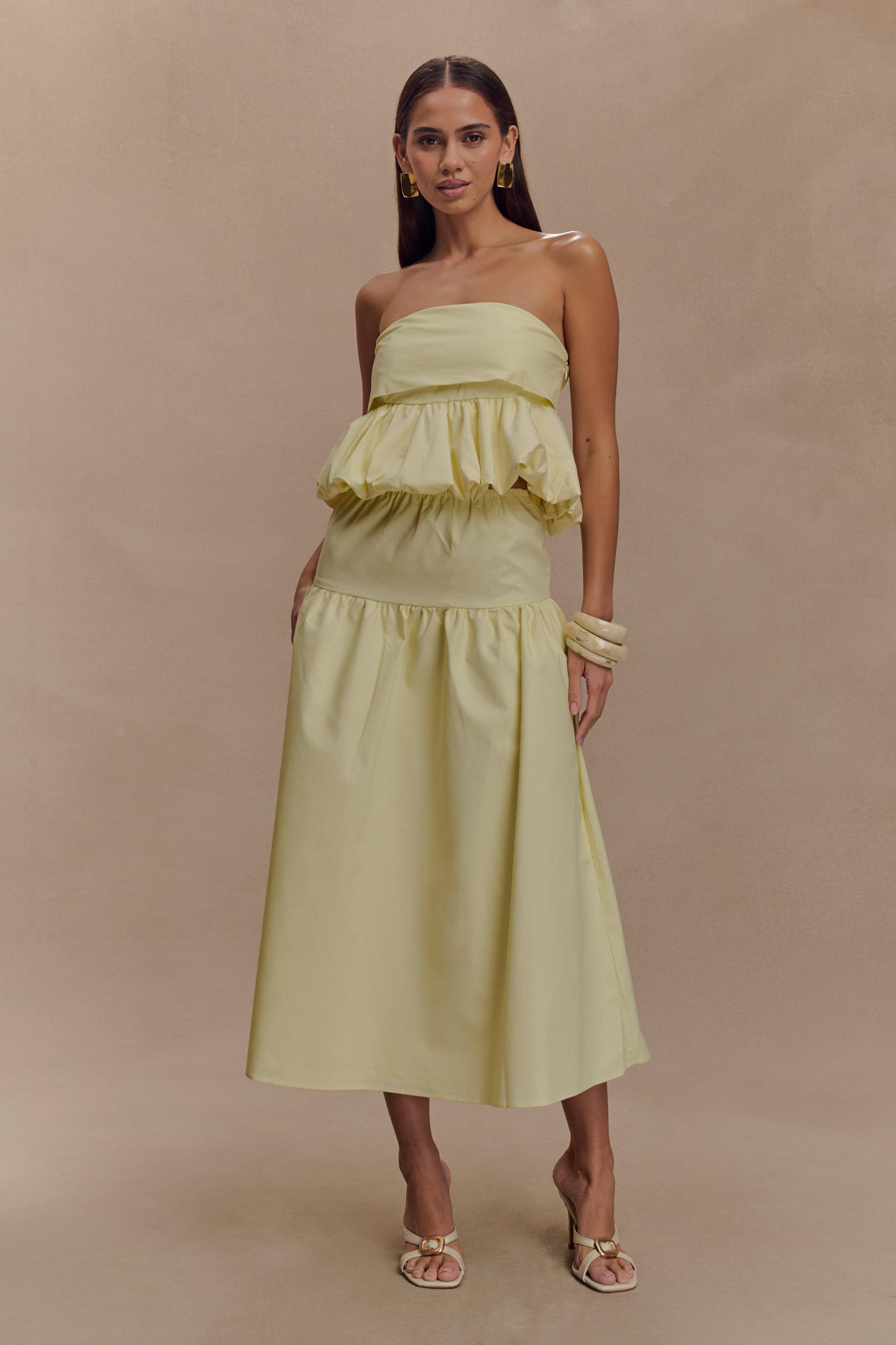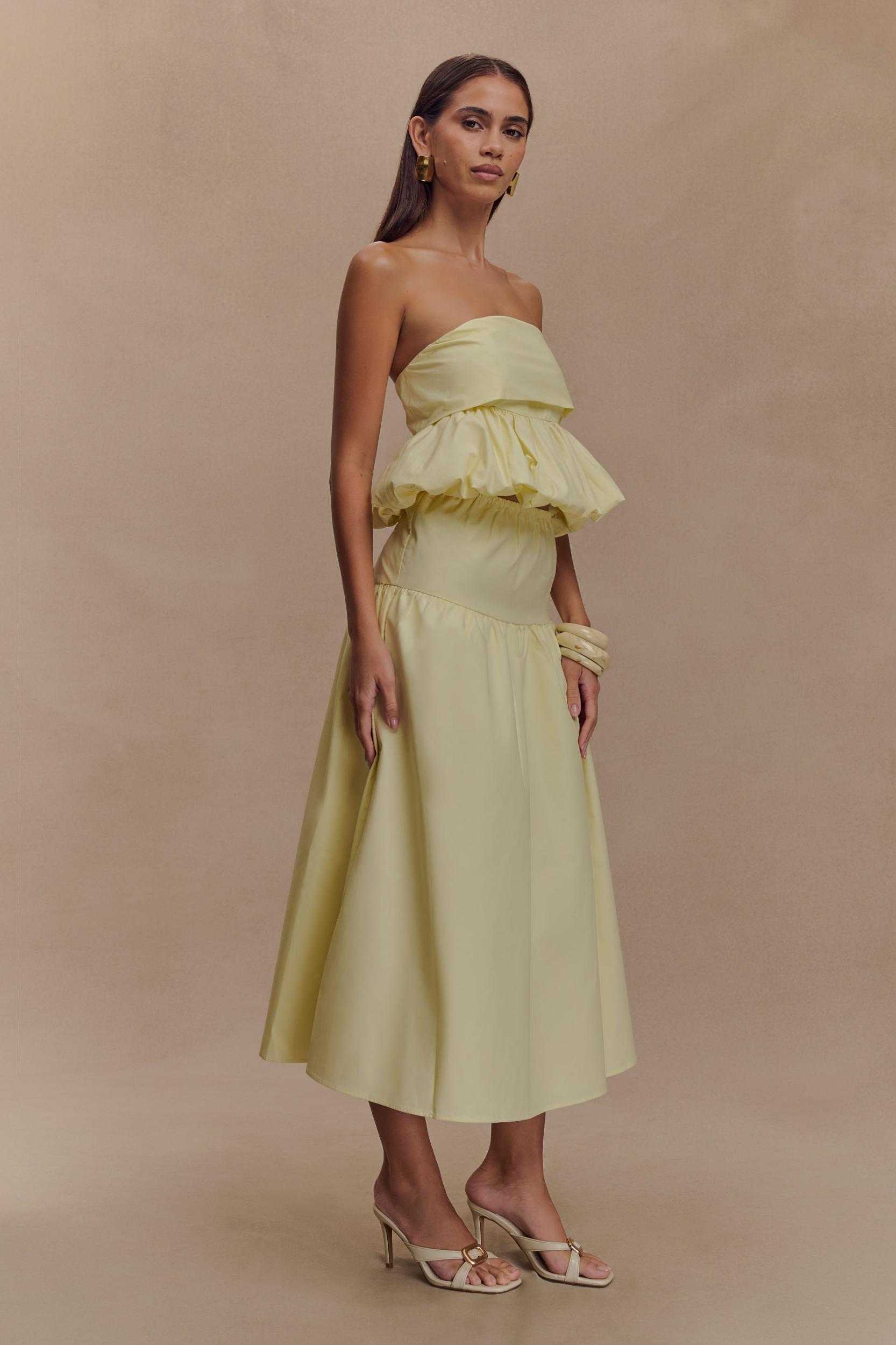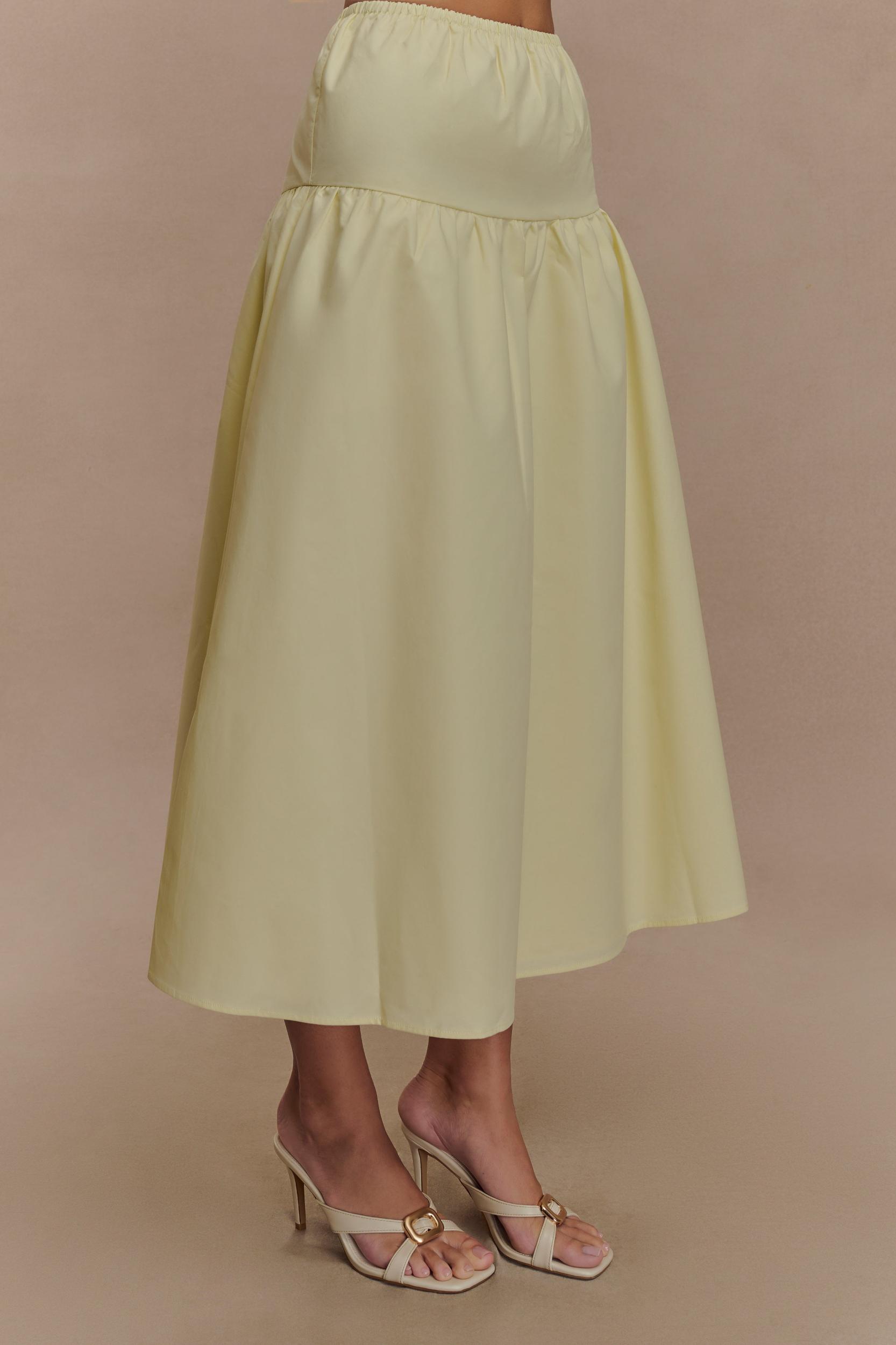 Effortless flair. The AMIRAH Midi Skirt is the epitome of effortless elegance, combining comfort and style in a versatile design. With its mid-rise elastic waistband and tailored yoke panel, this skirt offers a flattering fit that transitions seamlessly into a full, flowy silhouette. The midi length adds timeless sophistication, while the unlined construction ensures lightweight comfort for all-day wear. Pair it with the Amirah Strapless Bubble Crop Top for a coordinated look that’s equal parts chic and modern.