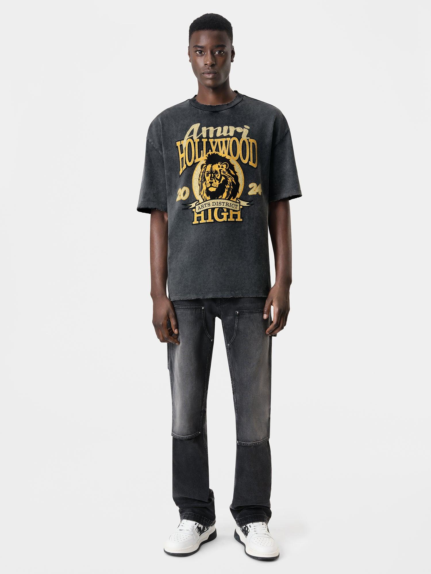 The Autumn-Winter 2024 collection weaves together collegiate iconography with cinematic visual cues. The AMIRI High Lion Skater Tee is illustrated with the season's lion graphic in a vintage-inspired distressed treatment. AUTUMN-WINTER 2024 COLLECTION MADE IN ITALY 100% Cotton