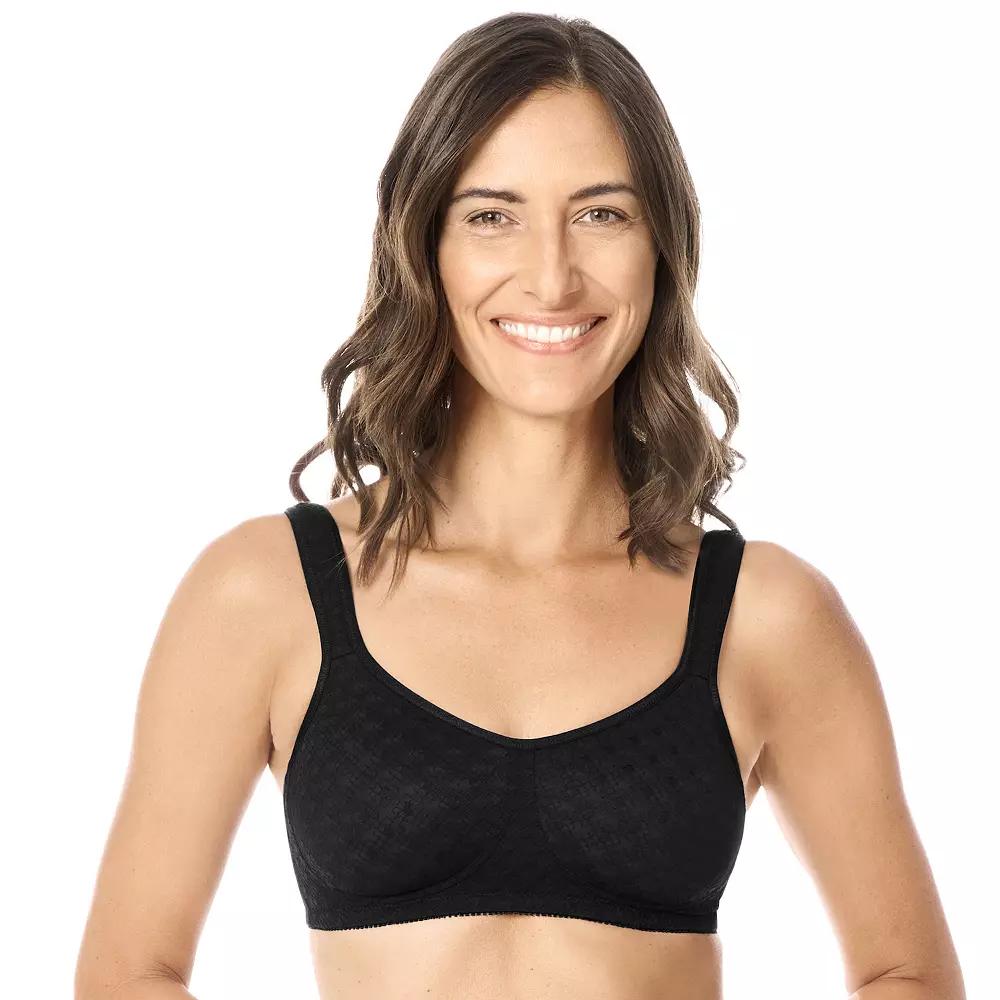 This classic fitting, wireless Tiana bra feels soft and breathable. Designed with you in mind, the padded shoulder straps increase in width in the larger sizes and are comfortably supportive. Note that if your breasts are reconstructed, you might need a shaper to fill the apex of the cup in this molded cup bra. This classic fitting, wireless Tiana bra feels soft and breathable. Designed with you in mind, the padded shoulder straps increase in width in the larger sizes and are comfortably supportive. Note that if your breasts are reconstructed, you might need a shaper to fill the apex of the cup in this molded cup bra. Wireless pocketed mastectomy bra Wider padded front straps are comfortable on your shoulders Bilateral soft bra pockets hold a breast form or shaper securely but anyone can wear this bra Softly padded hook & eye back closures Style no. 44809FIT & SIZING Hook-and-eye closure 3 hook columns, 3 hook rowsFABRIC & CARE Nylon, spandex Hand wash Imported Size: 46 Ddd. Color: Black. Gender: female. Age Group: adult.