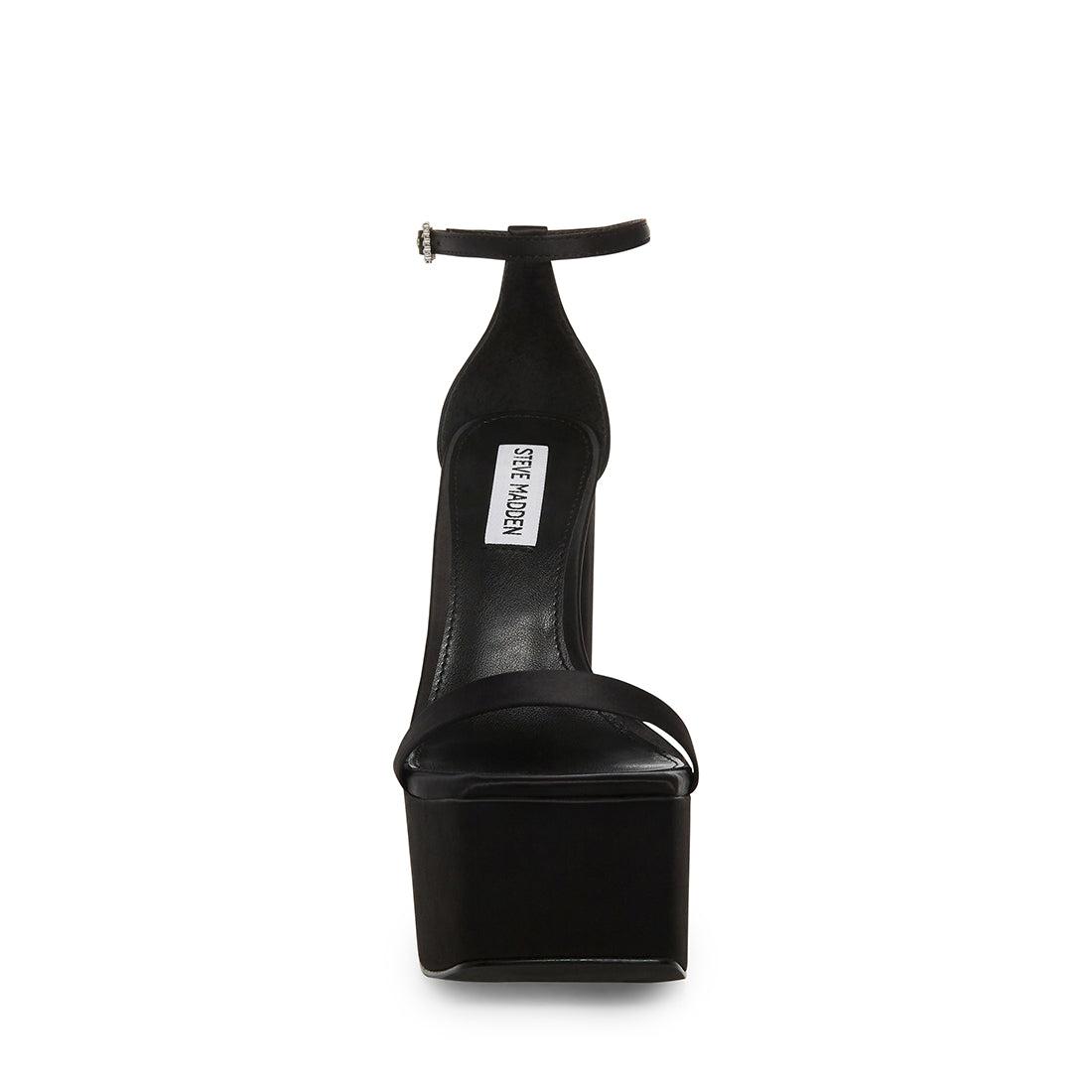 CHIC + DRAMATIC + SEXY AMORI is a sleek 2 strap sandal design set on a extra-high block heel and front platform, finished off with a square toe and a rhinestone buckle on the ankle strap. Platform heel sandal pump Buckle closure at ankle strap Square toe 6.25 inch heel height 2 inch platform Textile upper material Vegan leather lining Synthetic sole Imported