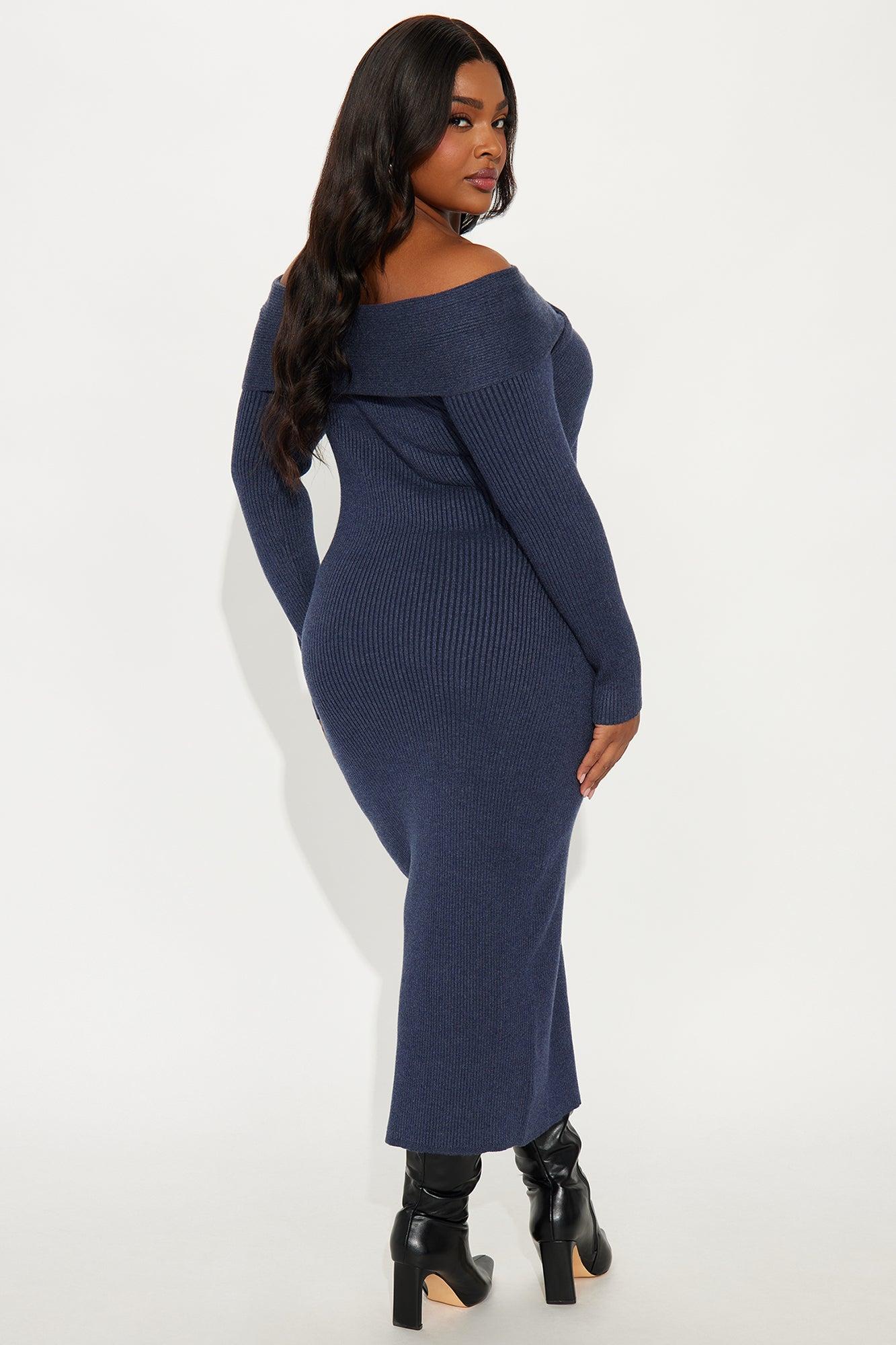 Amryn Off Shoulder Ribbed Midi Dress - Navy Female