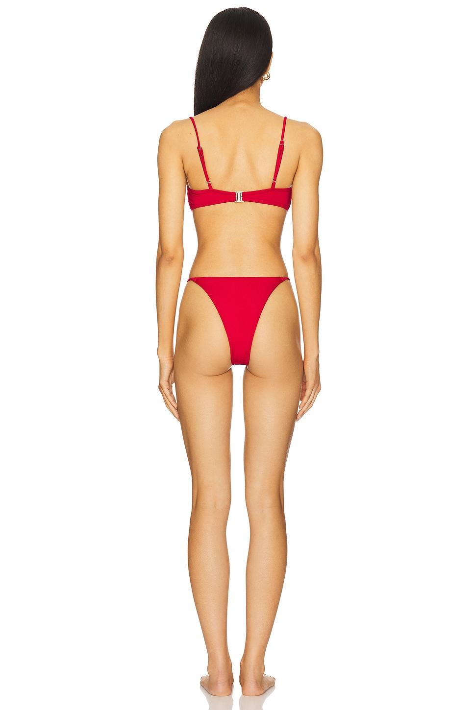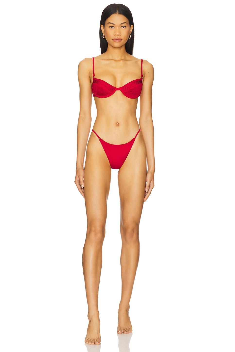 80% polyamide, 20% elastane. Hand wash only. Unpadded underwire cups with adjustable shoulder straps. Back clasp closure. Pleated cup design. Midweight jersey swimwear fabric. Sold as a set. Made in Turkey. Revolve Style No. SRIC-WX8. Manufacturer Style No. AMY BIKINI SET.