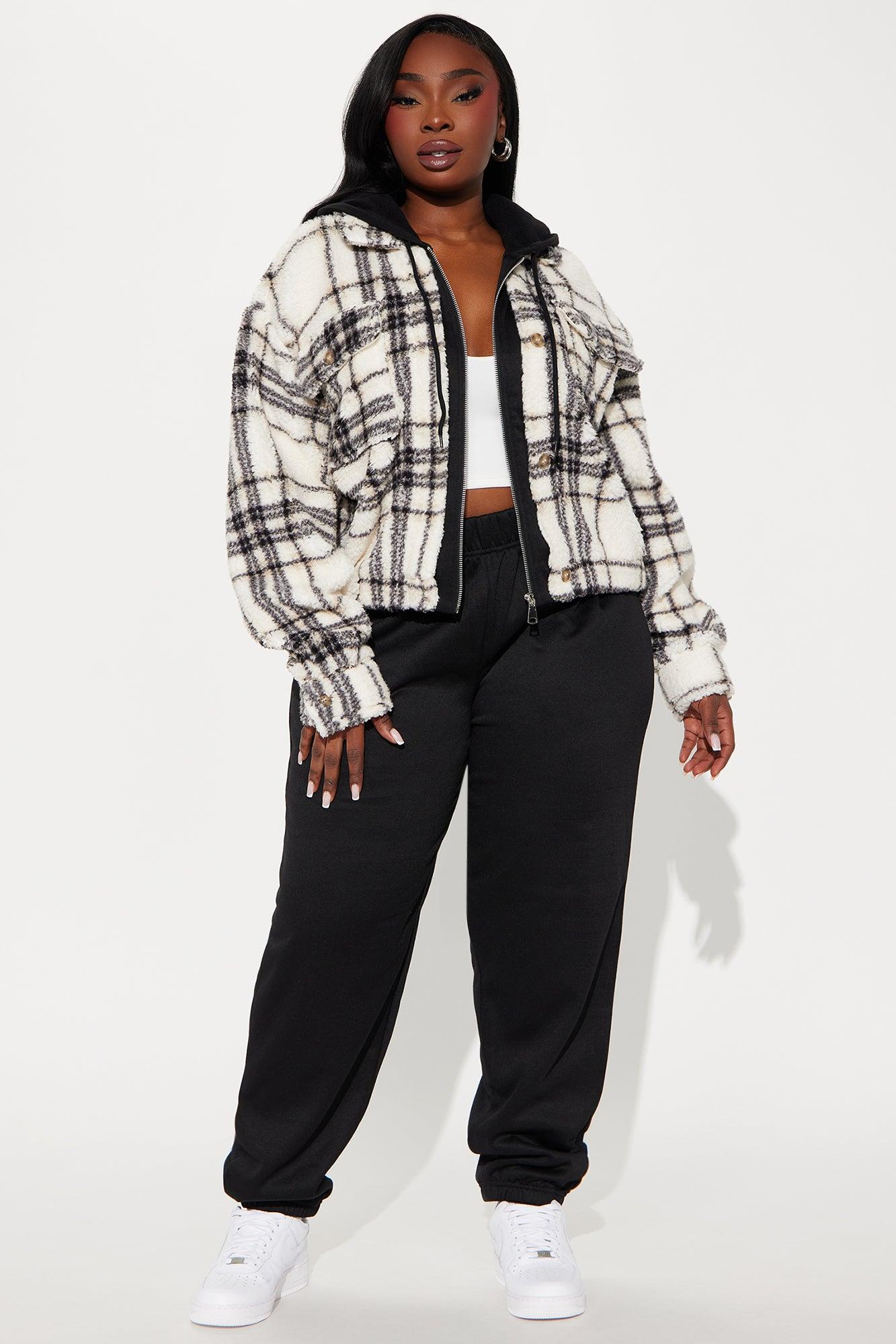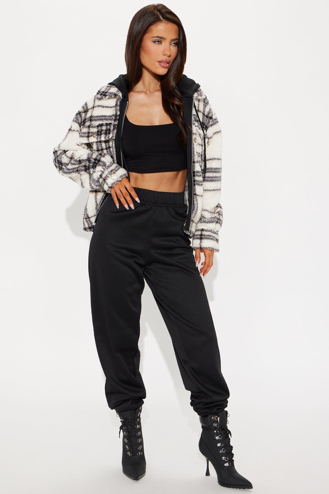 Available In Black/combo And Natural/combo. Sherpa/ Fleece Mix Pant Set Zip Hoodie Pockets Fleece Jogger Elastic Waistband Stretch 100% Polyester Imported