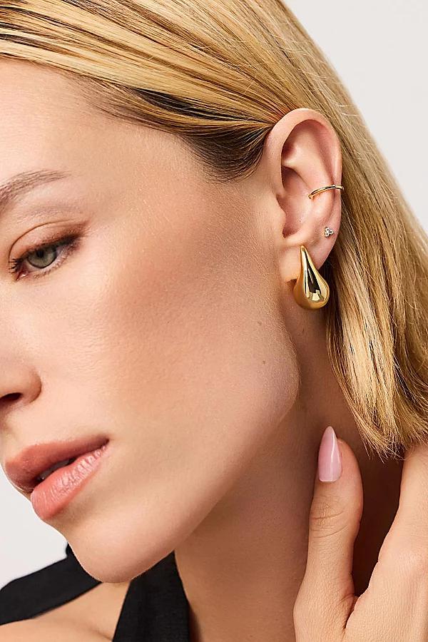 The trendiest studs of the year, these gold statement earrings are dipped in 14k gold with a high-shine polished finish. Featured in an oversized teardrop silhouette, these studs are nothing short of unique and are a piece that everyone will be trying to get their hands on. Although theyre perfect on their own, wed recommend styling them with our High Shine Bundle for effortless accessorizing. Content + Care Gold on Recycled Brass, Stainless Steel, Cubic Zirconia Wipe Clean Imported Size + Fit