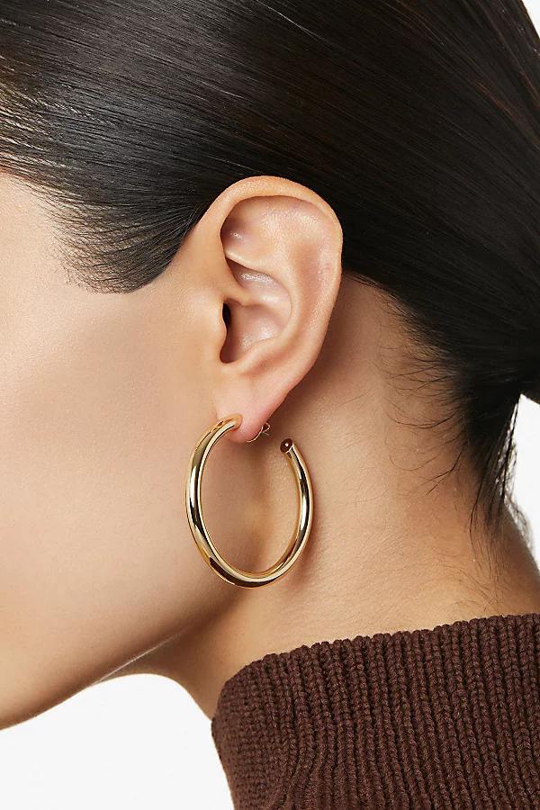 You can never go wrong with this pair of hoop earrings with a high-polish texture and hypoallergenic titanium posts. These classic gold hoops are meant to be worn every single day by a confident and chic woman. Score bonus styling points by pairing these gold or silver hoop earrings with a gold or silver thin collar. Content + Care Gold: 14K Gold on Brass Silver: Rhodium on Brass, Cubic Zirconia Wipe Clean Imported Size + Fit Width: 39.8mm - 1.5 Depth: 4.37mm - 0.17 Weight: 4.2g Hoop Diameter: