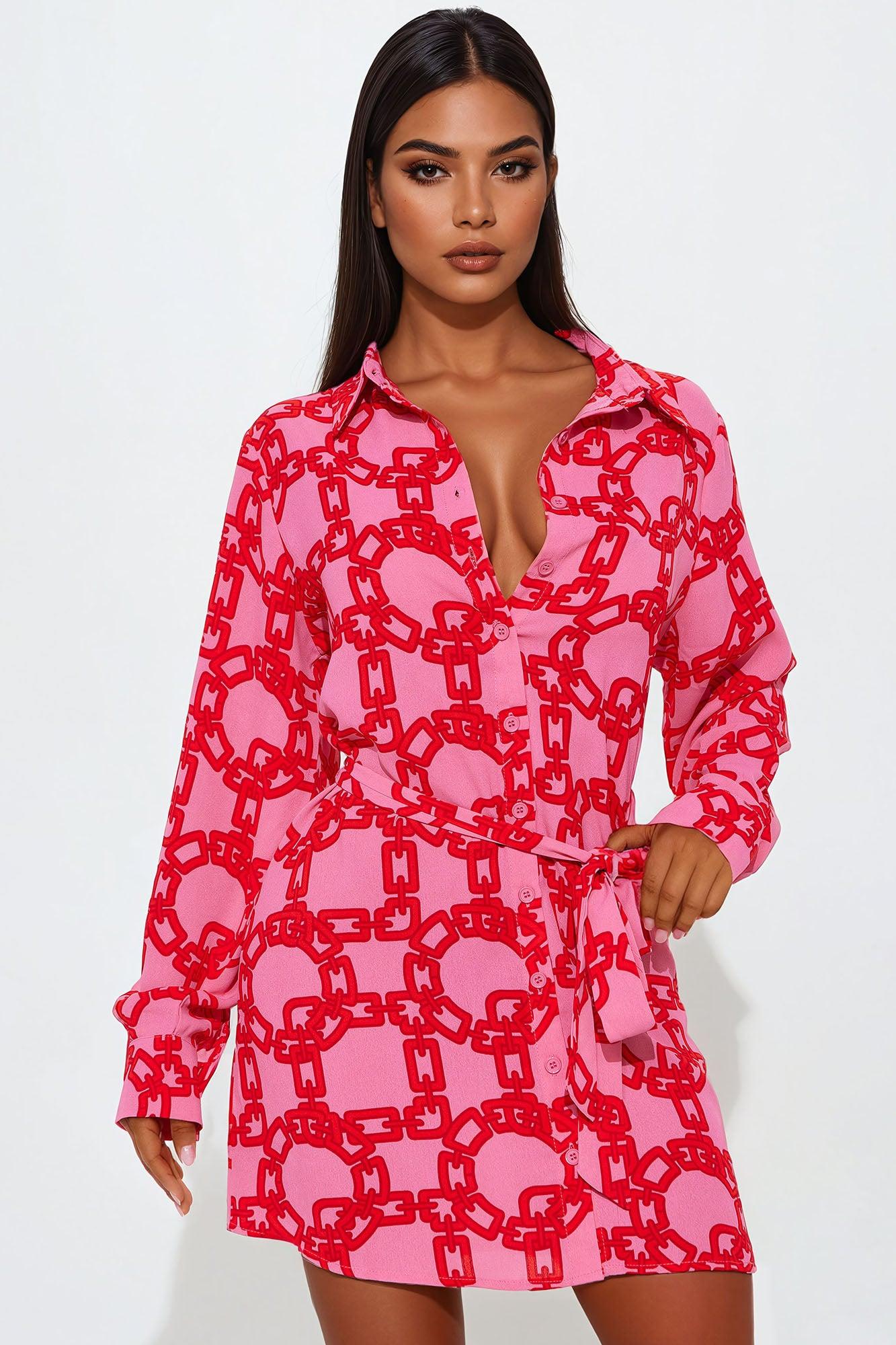 Anabelle Belted Mini Shirt Dress - Pink/combo
