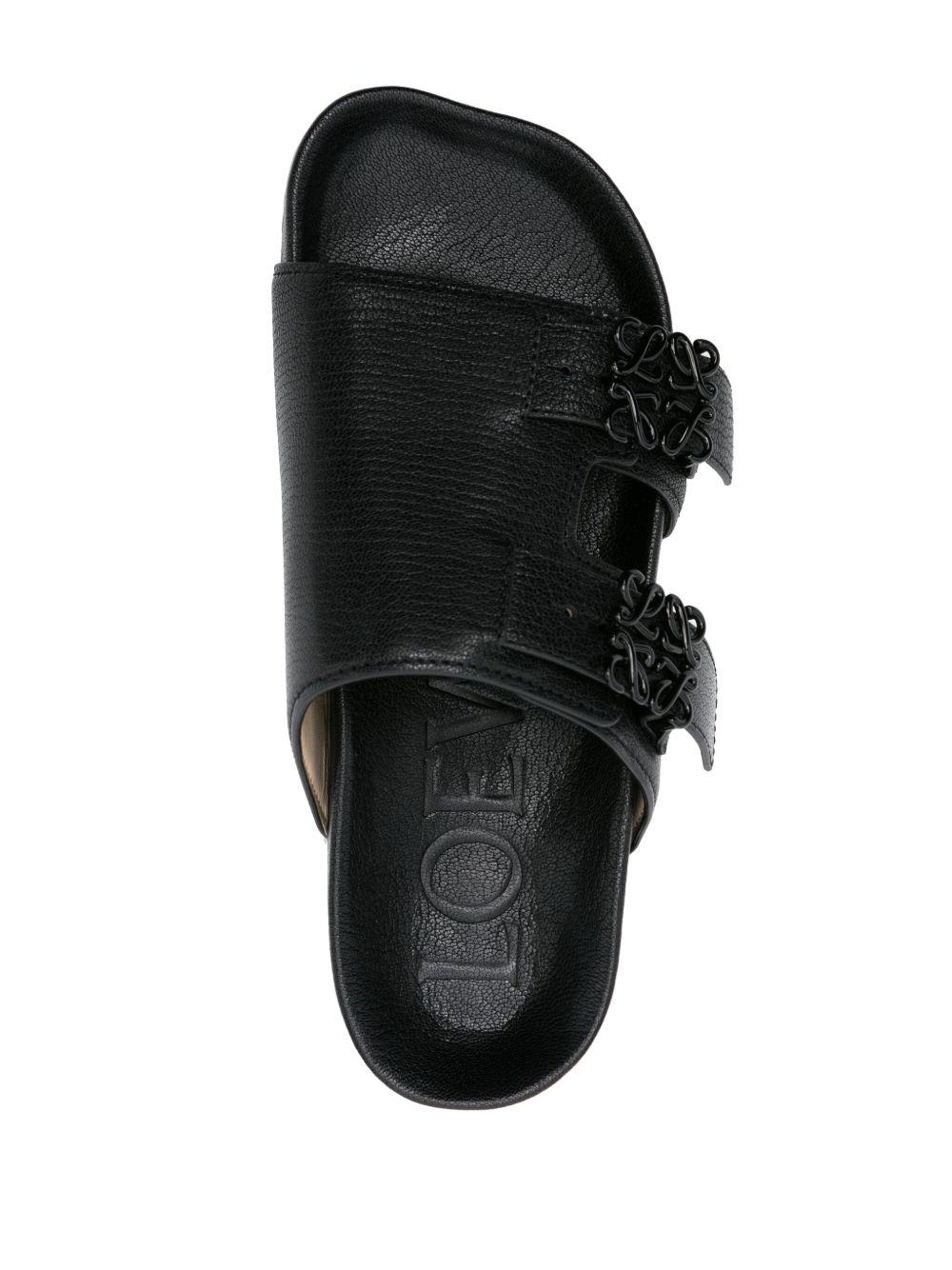 Anagram-buckle leather slides
