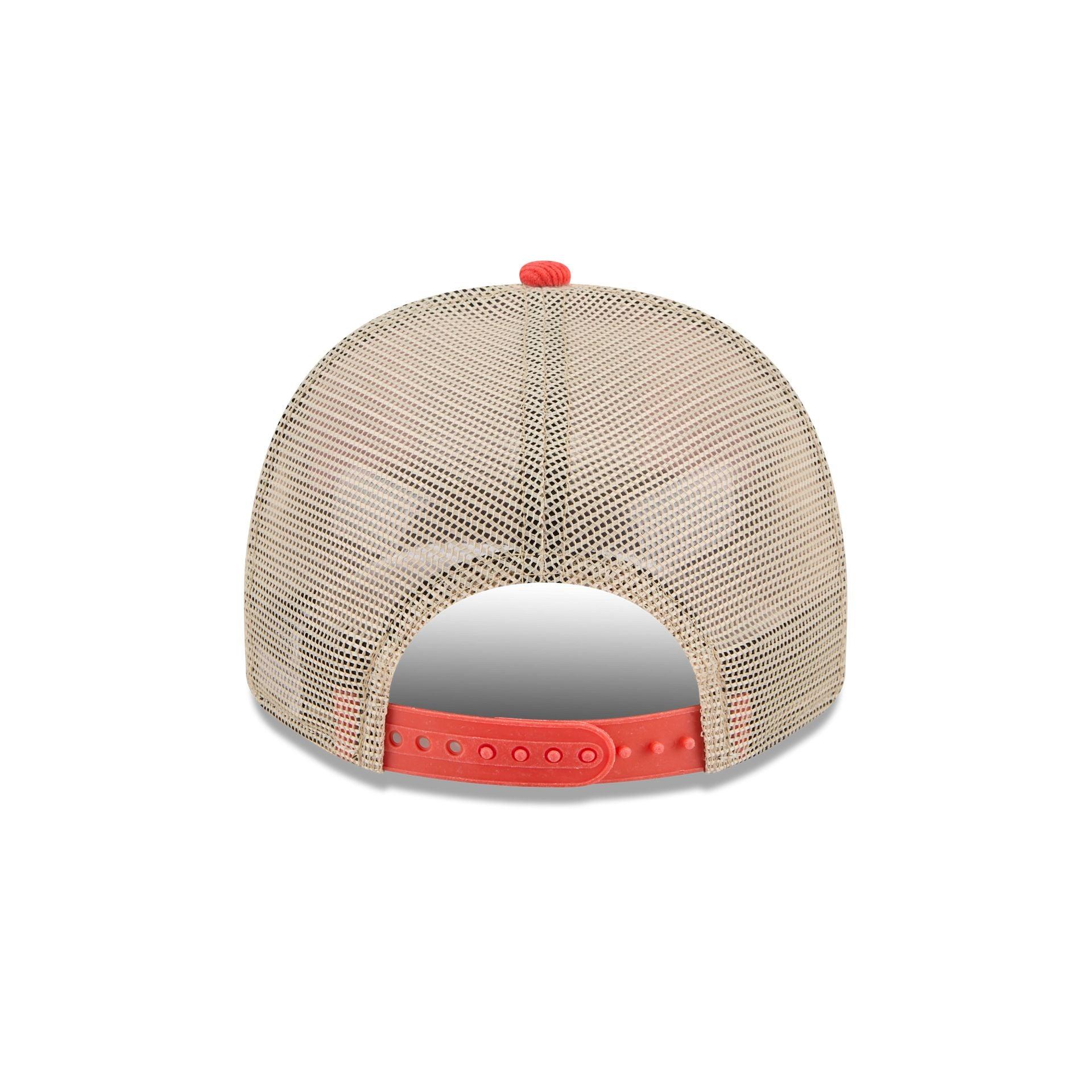 The Chicago Bears Vintage Landscape 9FIFTY A-Frame Trucker features an embroidered Bears Vintage Landscape patch at the front panels with a team logo at the right-wear side. Additional details include an adjustable snapback closure at the rear and a gray undervisor.