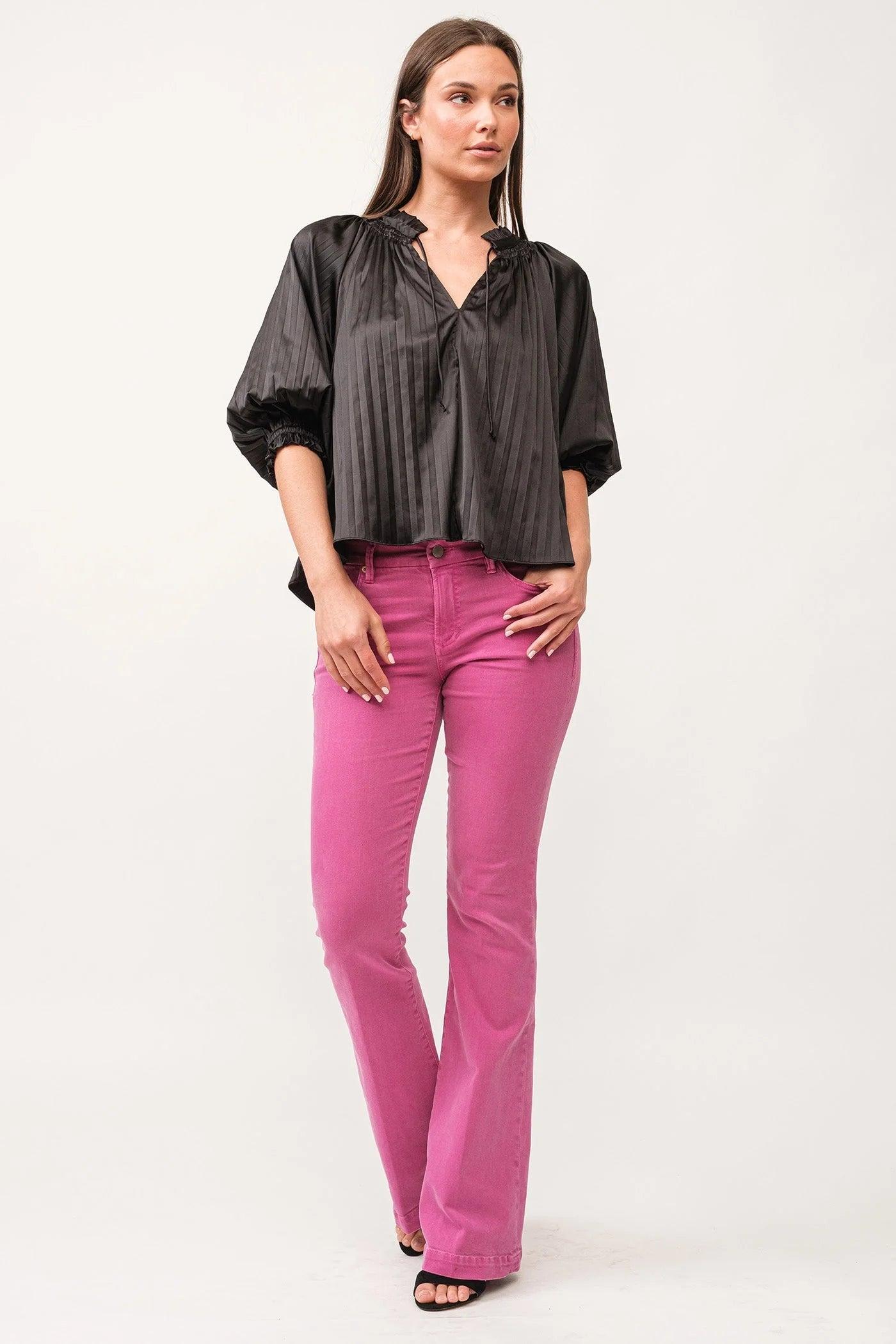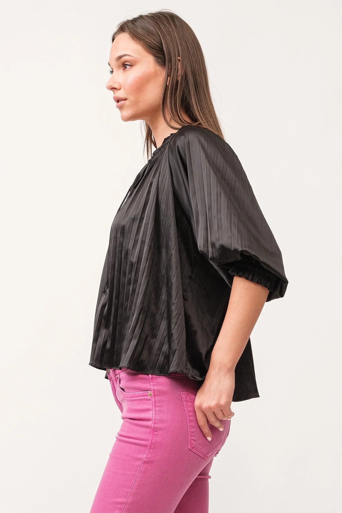 Elevate your wardrobe with the Anais ruched neck top, a staple in women's fashion that seamlessly combines style and functionality. This top features a sophisticated ruched neck design and 3/4 sleeves, adding a touch of elegance to any look. The pleated details create a flattering silhouette, making it a versatile outfit choice for any occasion. Ideal for those seeking comfortable clothing for women that doesn't compromise on style, this top is perfect for both professional settings and casual outings. Its thoughtful design ensures a flattering fit, while the ruched neckline offers an adjustable feature that can be styled according to preference.