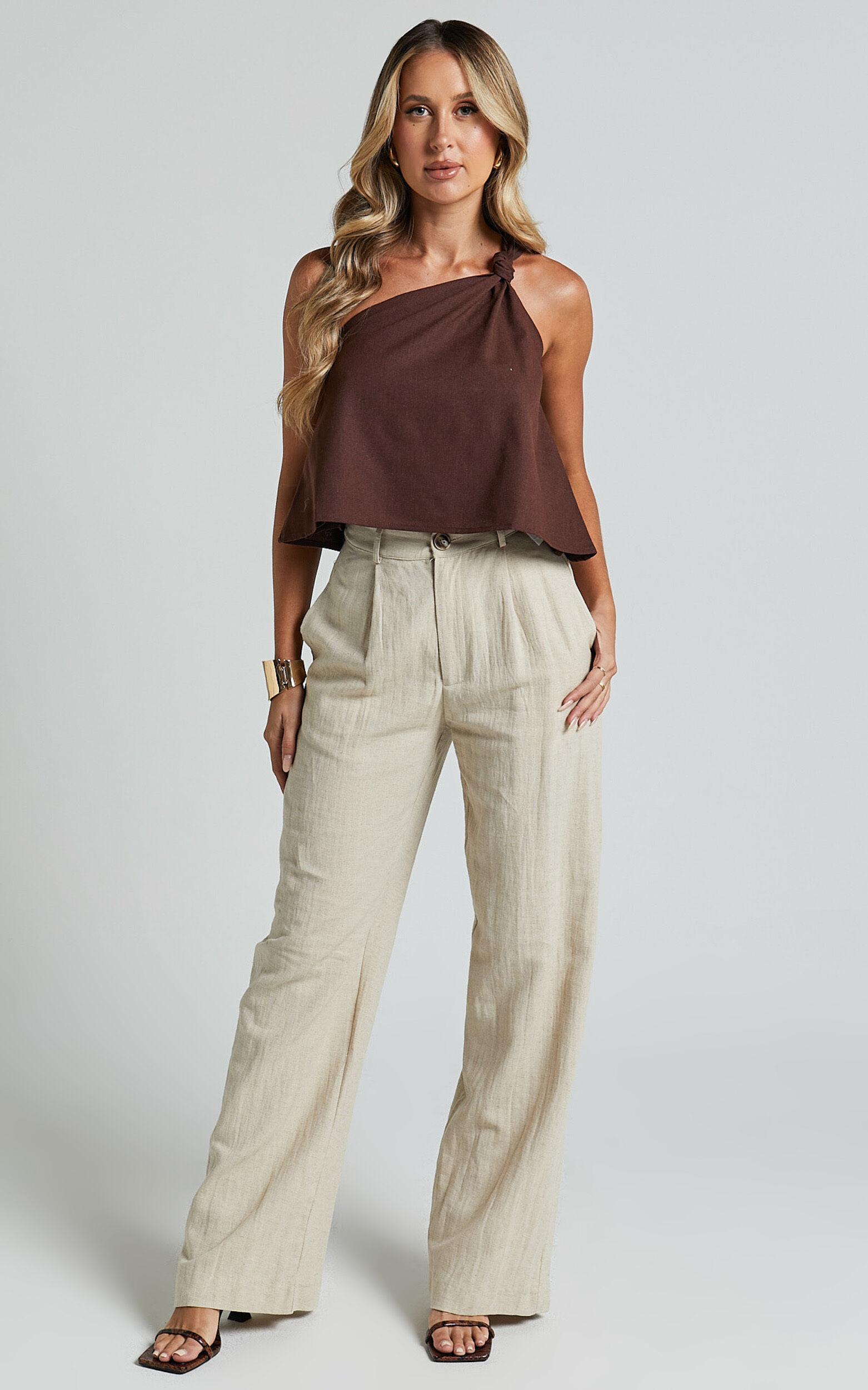 Get ready to make a statement with our Analia Top in Chocolate! This one shoulder knot detail top is the perfect addition to your casual wardrobe. Made from soft and comfortable rayon, this fashion-forward piece will turn heads wherever you go. Whether you're dressing it up for a night out or keeping it casual with jeans, the Analia Top is sure to elevate any outfit. Embrace your individuality and show off your unique style with this empowering and inclusive fashion top. Don't miss out on this must-have addition to your collection of tops!Product Details:One shoulder camiCasual styleMade from rayon materialSuitable for any occasionSize and FitSize S / 8 length: 48.5cm / 19.09inMaterial and CareMain Fabric: 100% CottonLow / No stretch