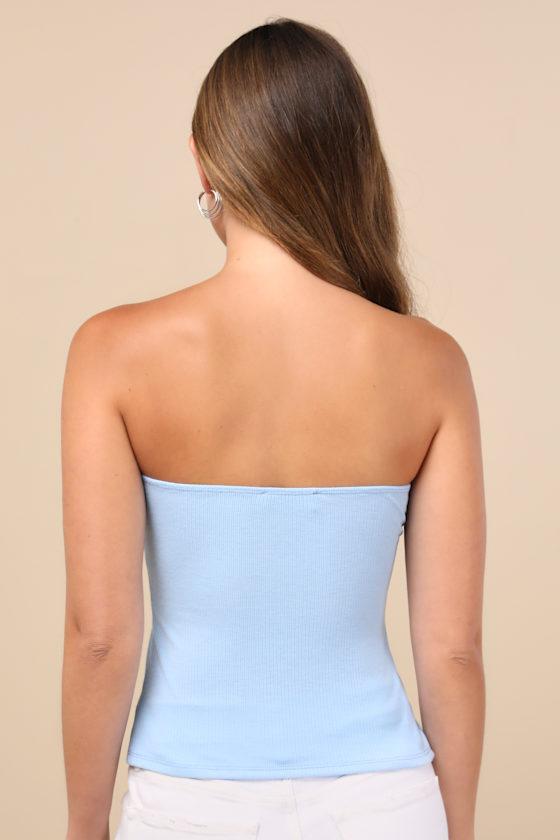 Hot days don't even know what they're up against when you style this sultry strapless top, shaped by a perfectly stretchy and lightweight ribbed knit. Engraved, metal beaded details accent the fitted bodice, creating a flirty cutout design at the center.