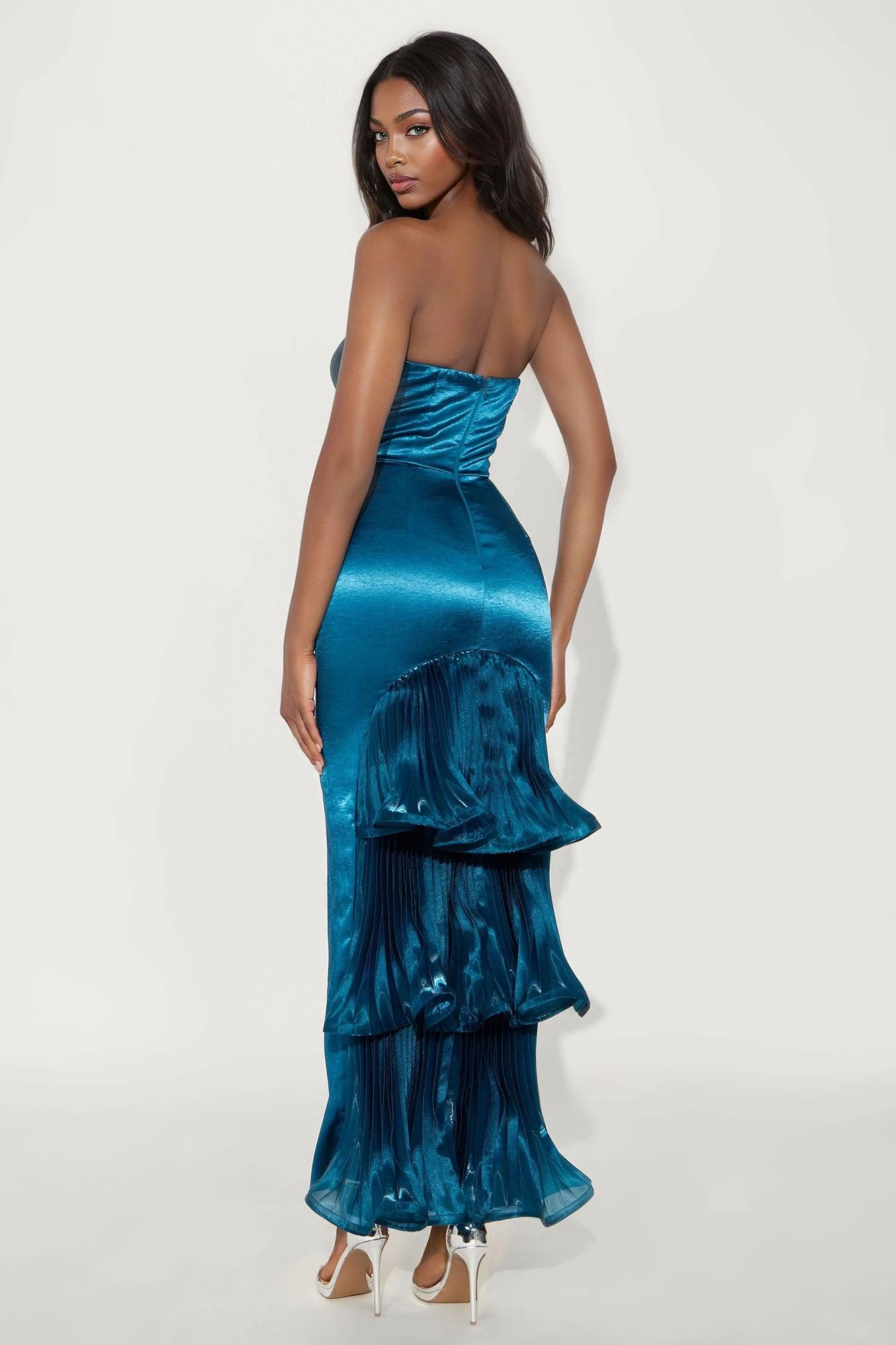 Anastasia Ruffle Satin Gown - Blue Female
