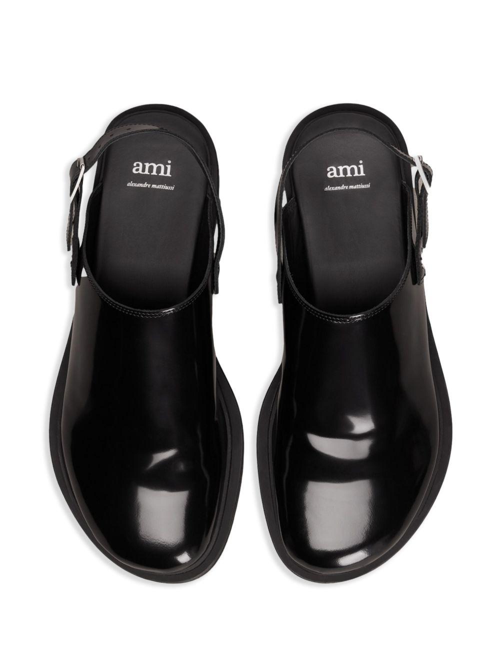 AMI Paris patent-leather slingback sandals | Black | Calf Leather/Leather/Calf Leather | Sandals | Shoes | Men | Flat Mules | Mules | Shoes | Women