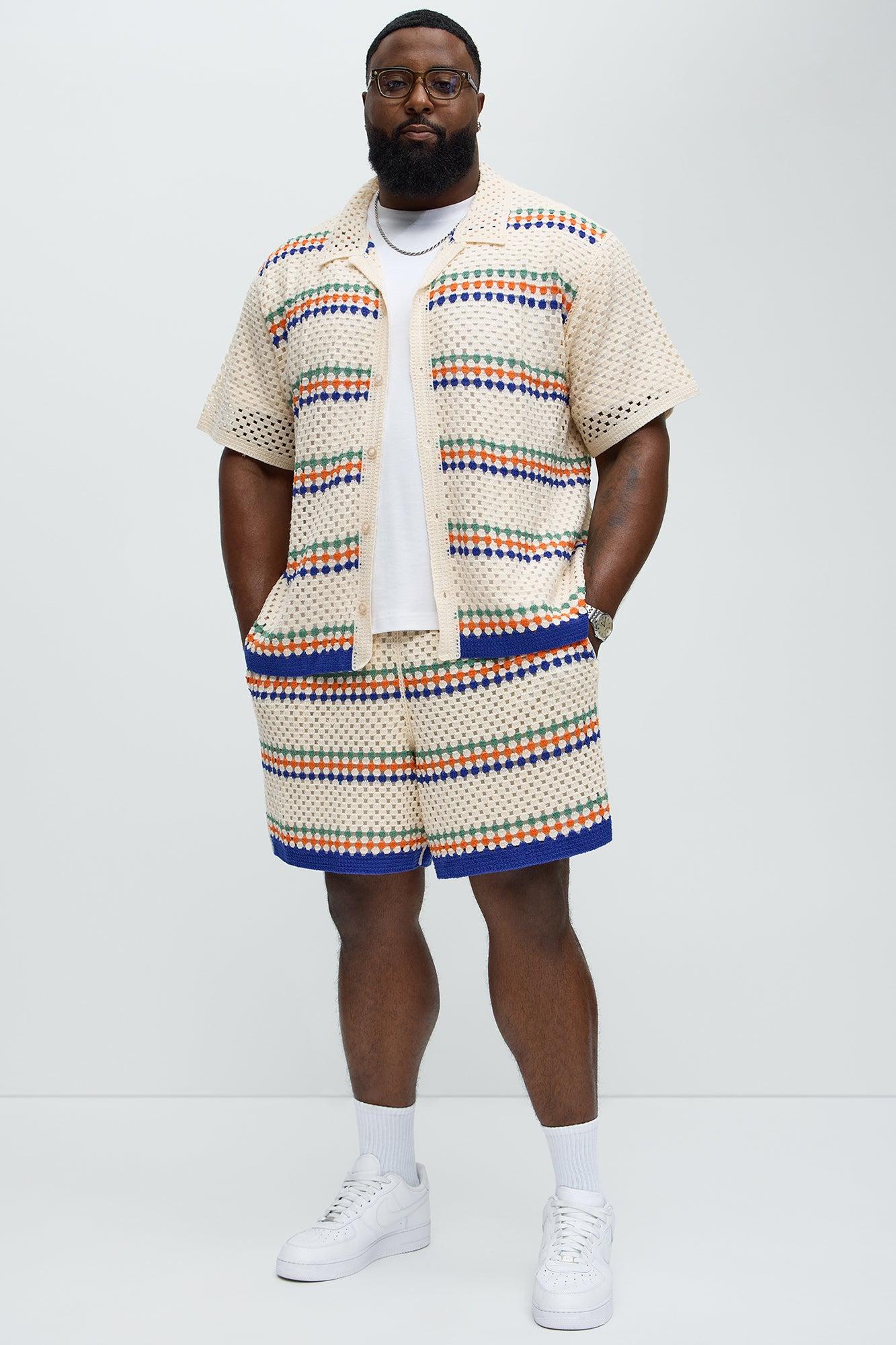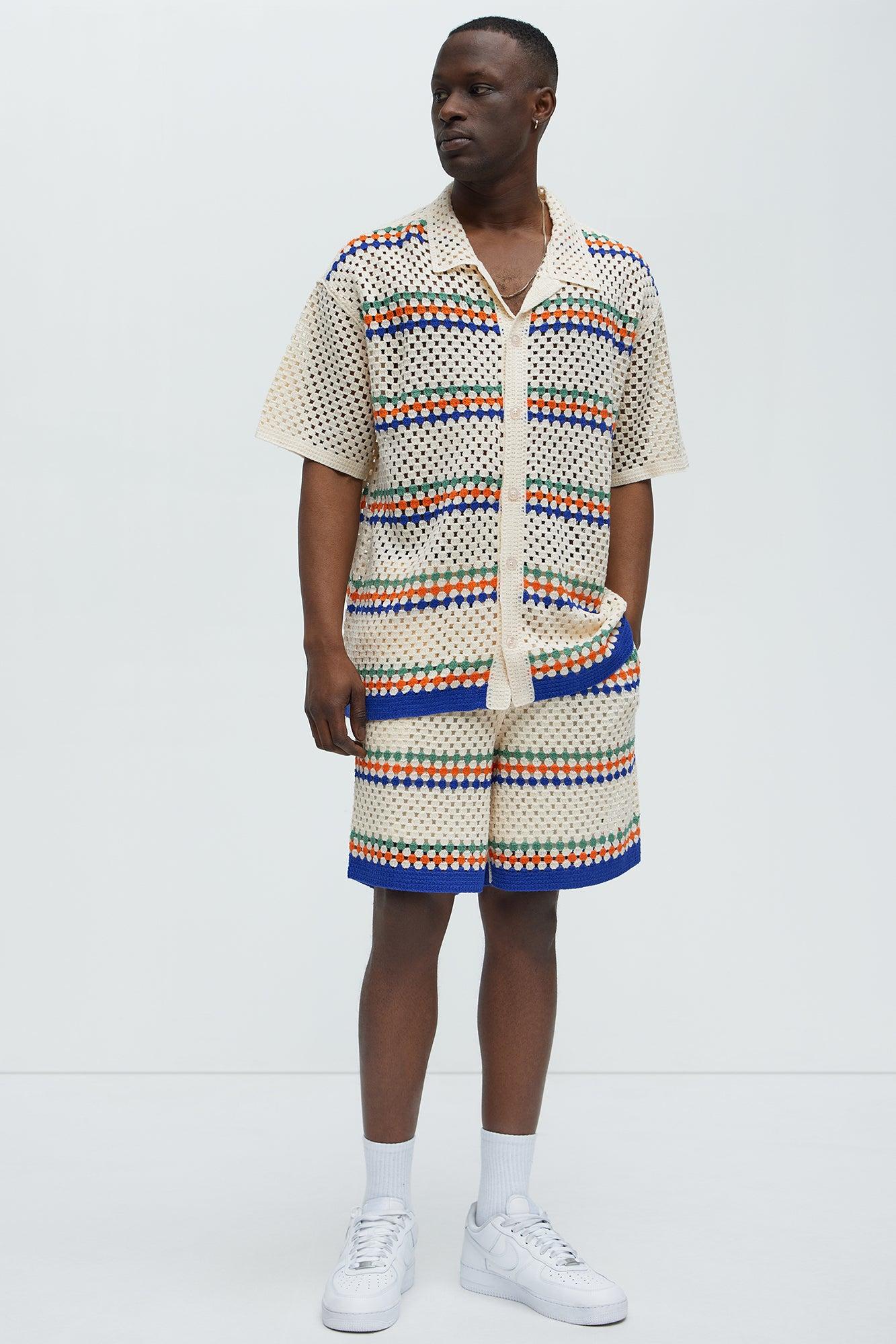 Available In Cream/combo. Drawstring Waist Side Hand Pockets Pair with "Anderson Crochet Cuban Collar Knitted Shirt" Self: 100% Acrylic Lining: 100% Polyester Disclaimer: This garment has been made with delicate materials and may snag or pull if jewelry or watches are worn. Do not wash with items that may cause snagging such as zippers or hooks. This garment is unique and must be handled with care. Imported