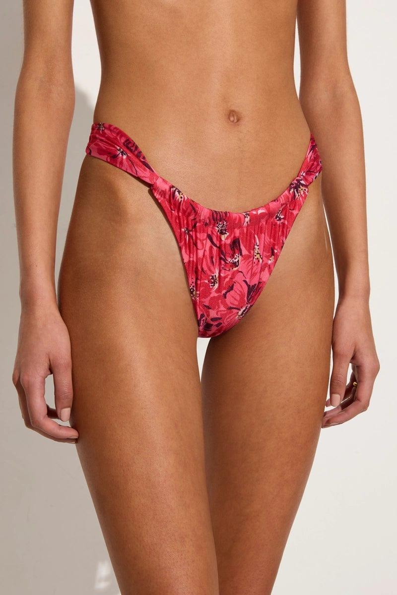 The Andez Bikini Bottoms in El Limon Floral are our signature triangle bottoms offering cheeky coverage with adjustable gathering. This style is thoughtfully crafted from certified recycled nylon and patterned with pink feminine florals all over. Pair it with the matching Sol Bikini Top.