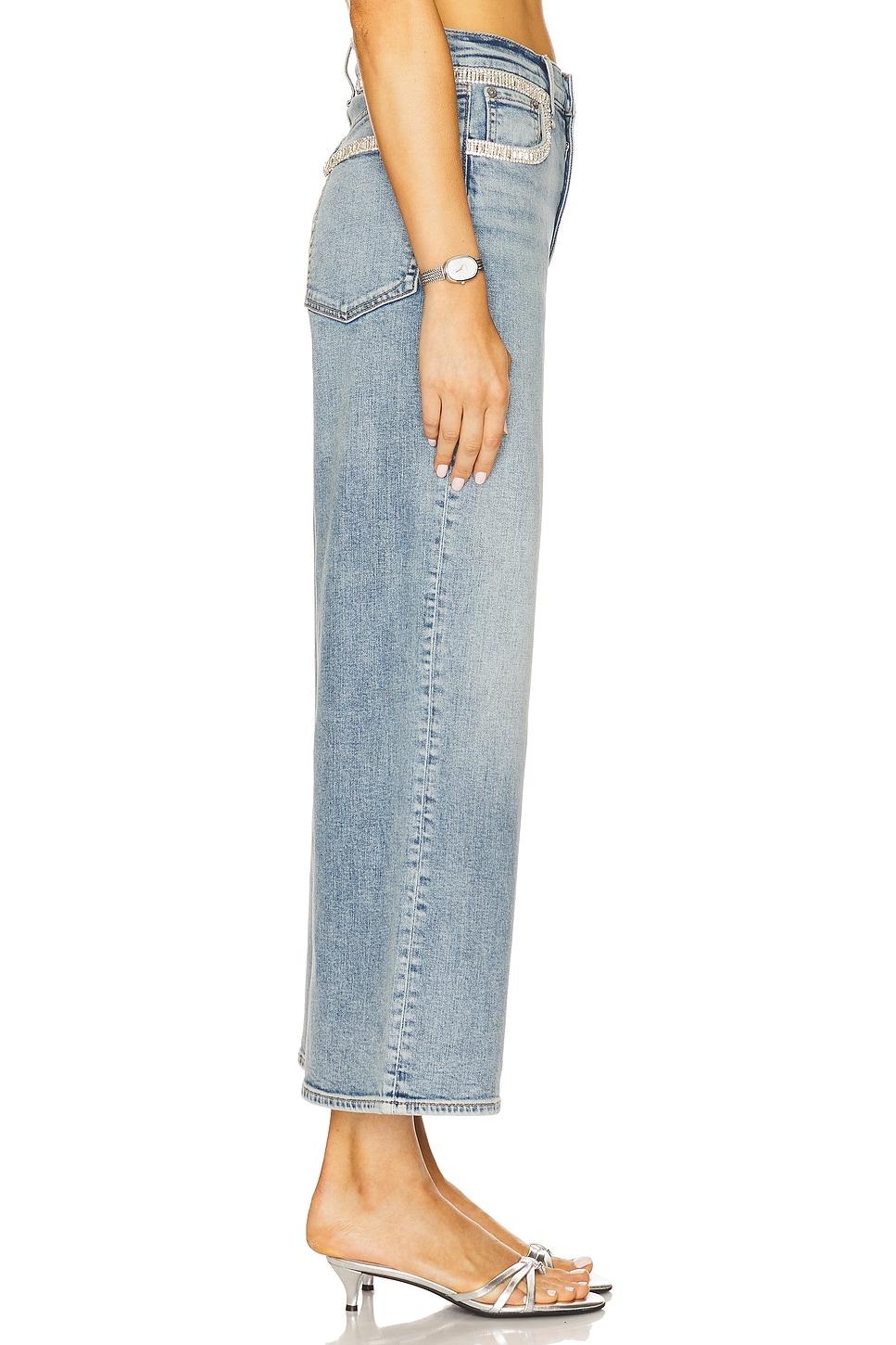 99% cotton, 1% elastane. Machine wash cold. Zip fly and button closure. 5-pocket design. Cropped styling. Midweight stretch denim fabric with rhinestone trim. Item not sold as a set. 22" at the knee and 22" at the leg opening. Made in China. Revolve Style No. RGBR-WJ645. Manufacturer Style No. WDD25S2914VSPJ.