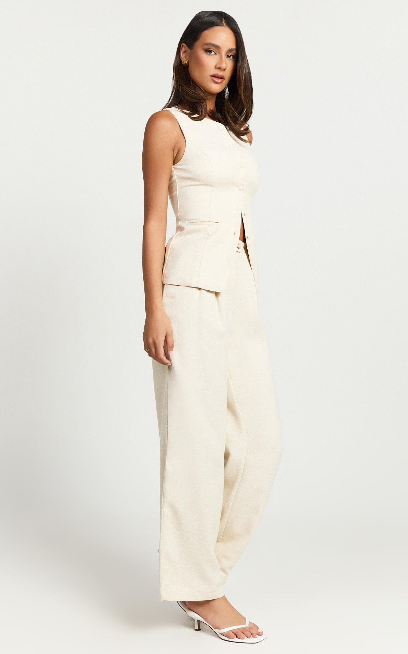 Transform your look with the Andie Top – your new go-to crew neck longline vest top in a chic cream shade. Perfectly blending sophistication with on-trend style, this top is an absolute must-have for the fashion-forward Gen Z and Millennial shopper. Crafted from high-quality twill polyester, it promises both durability and comfort, while its sleeveless design makes it a versatile piece for all seasons.Product Details:Twill fabricCrew necklineWorkwear essentialLongline designSleeveless stylePolyester materialSize and FitSize S / 8 length: 62cm / 24.41inMaterial and Care90% Polyester, 10% RayonNo Stretch