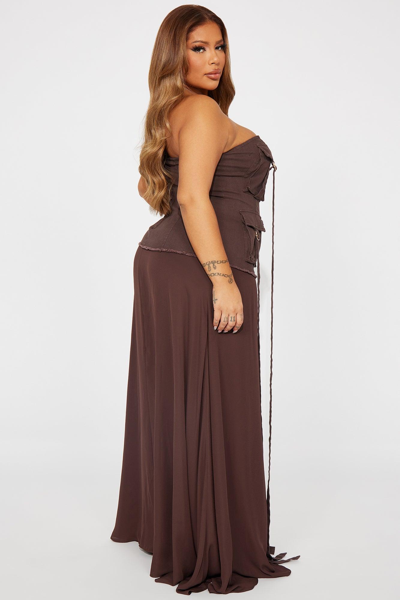 Andrea Cargo Denim Maxi Dress - Chocolate