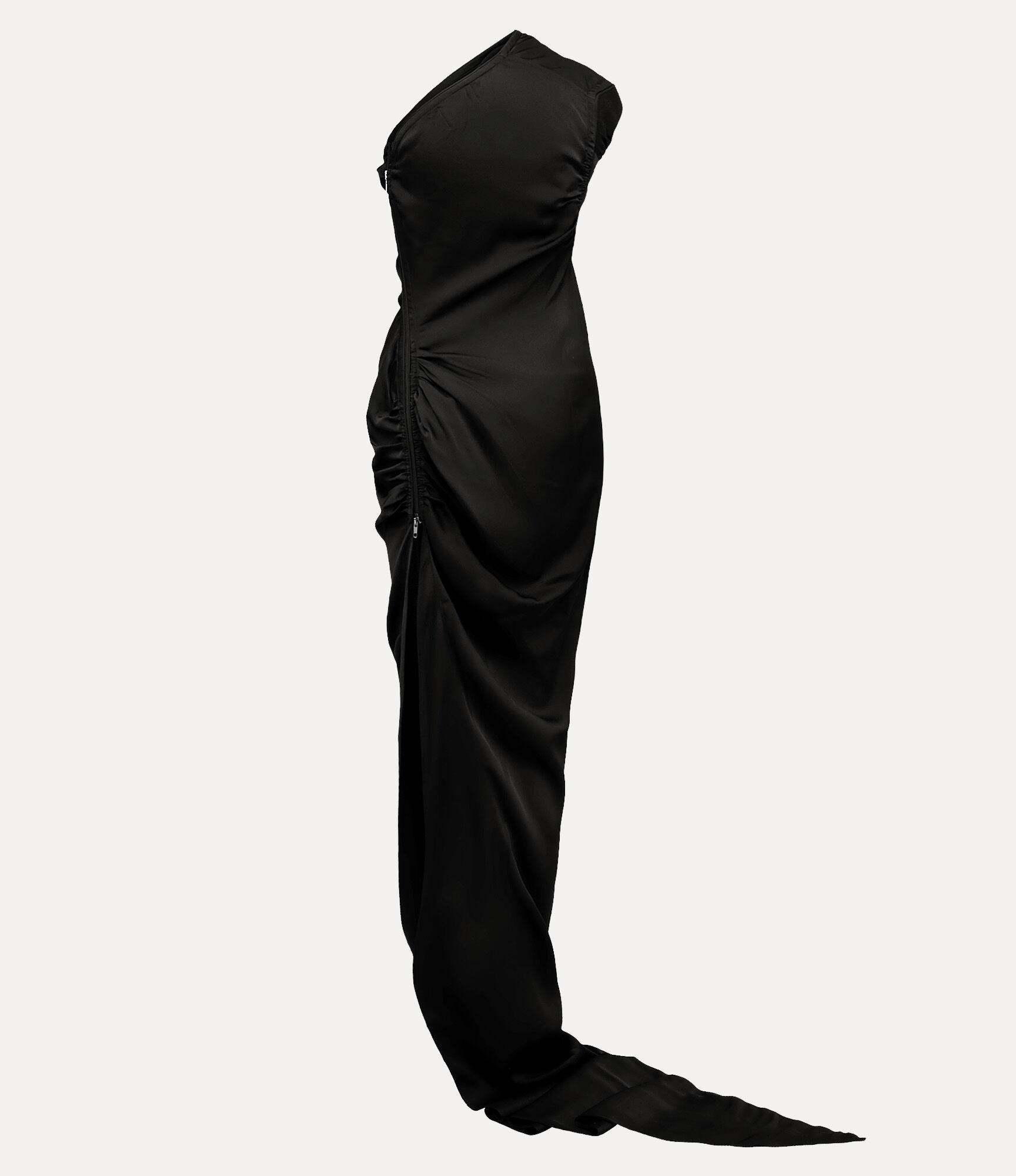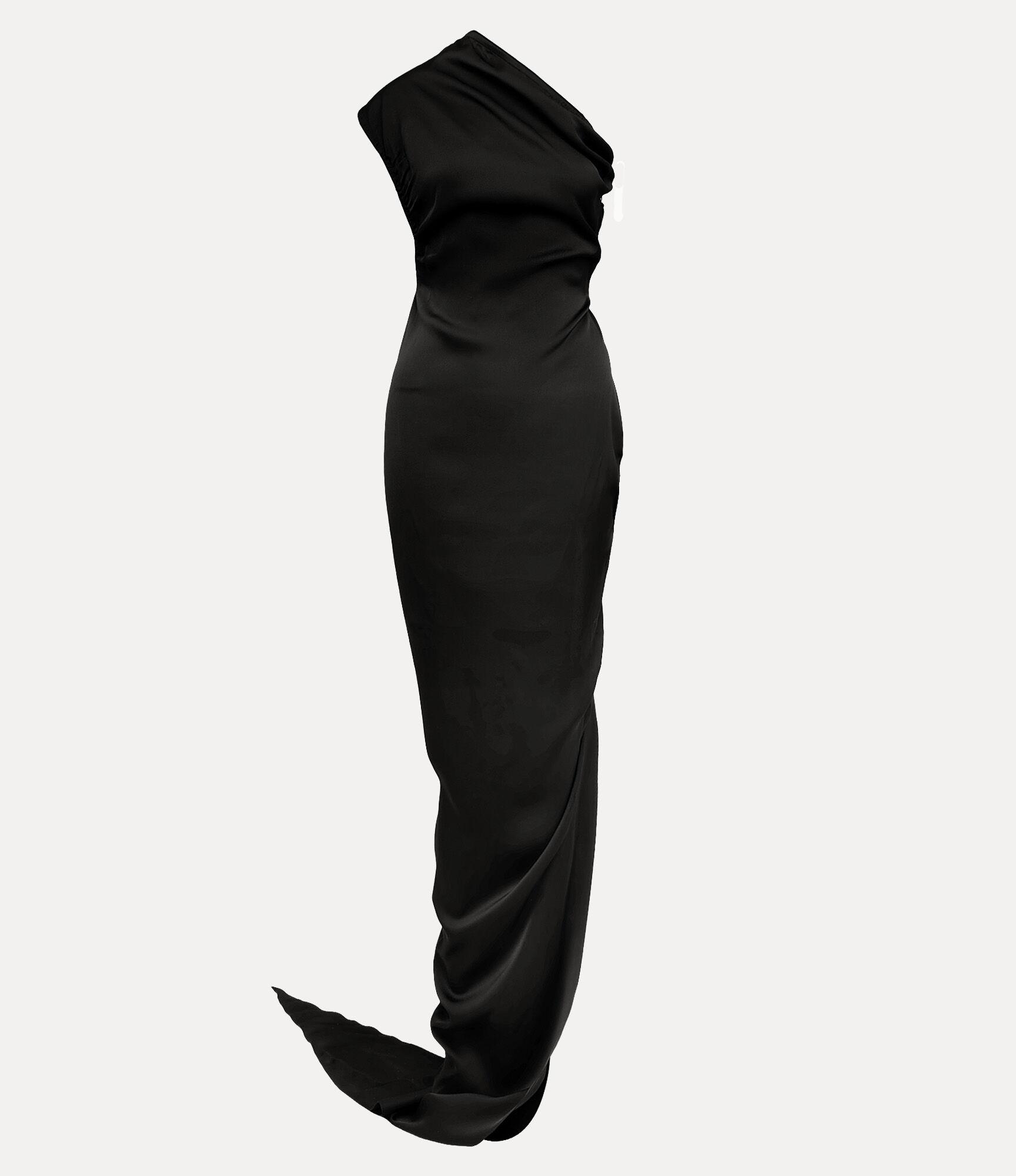 Our Andreas Dress is defined by its sweeping one-shoulder neckline, sculpting the form with a fitted bodice and delicate darting that traces the silhouette. Along the side, gentle ruching gathers the fabric into a soft drape, cascading into an elegant train.