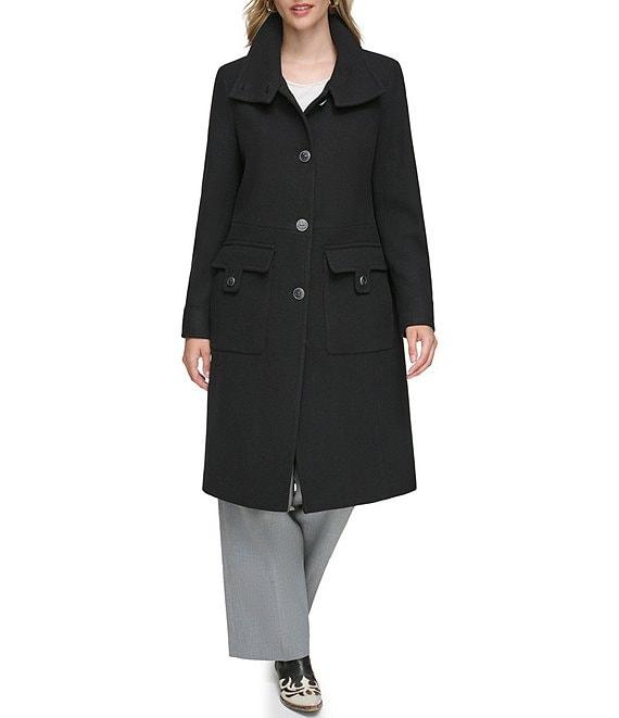 From Andrew Marc Sport, this coat features: wool twill shell fabrication funnel collar neckline long sleeves sleeve cuff button detail center front button closure back belt detail approx. 41.50" length wool/polyester/nylon/acrylic/rayon dry clean only Imported.