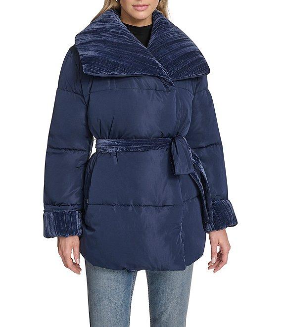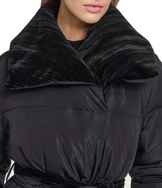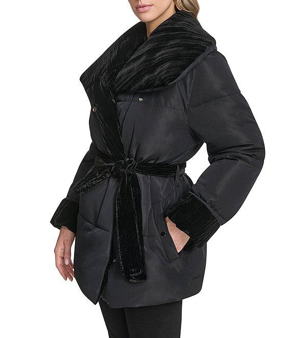 From Andrew Marc Sport, this coat features: Mixed media fabrication Wrap silhouette Oversized collar neckline Long sleeves with optional roll-up Two welt pockets with snap closure Interior pocket Belted Water resistant Regular fit Fully lined Straight hemline Hidden snap closure Approx. 29.5" length Polyester Machine wash Imported.