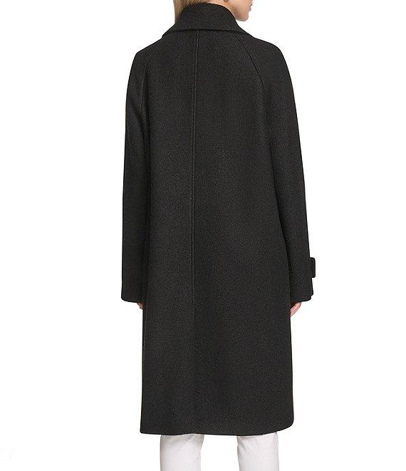 From Andrew Marc Sport, this coat features: Wool blend fabrication Balmacaan coat silhouette Point collar neckline Raglan sleeves with button cuff Side welt pockets with micro fiber lining Relaxed fit Fully lined Straight hemline Button front closure Approx. 40.50" length Wool/viscose Dry clean Imported.
