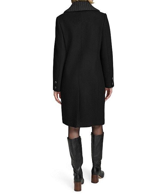 From Andrew Marc Sport, this coat features: Wool blend fabrication Double-breasted silhouette Notch collar neckline Long sleeves with button cuffs Side welt pockets Chunky heather rib at collar Faux horn button detail Regular fit Satin lining Straight hemline Button front closure Approx. 40" length Wool/polyester/acrylic Dry clean Imported.