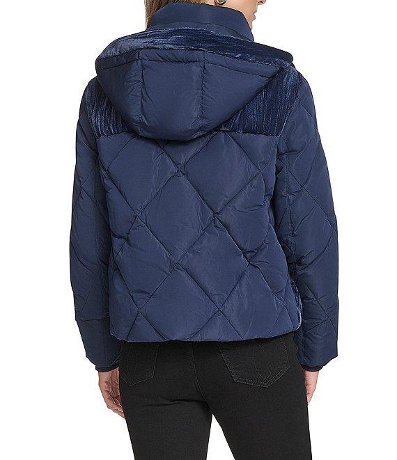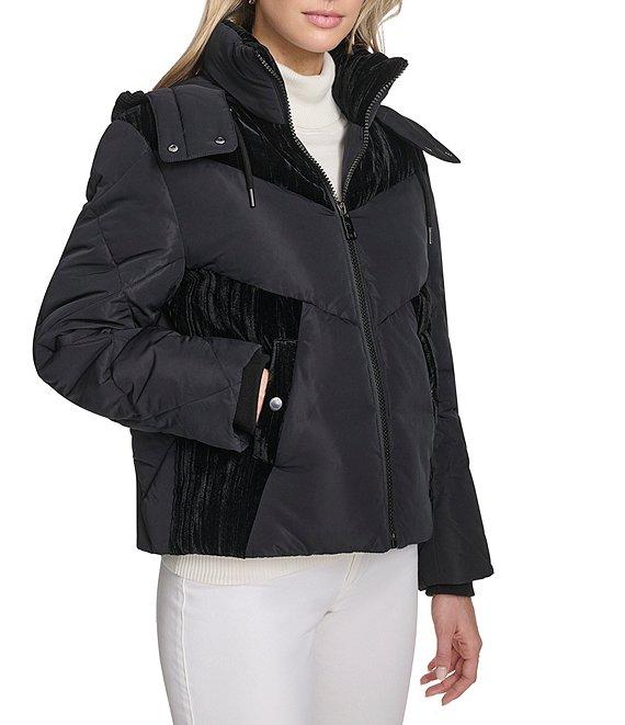 From Andrew Marc Sport, this jacket features: Mixed media fabrication Puffer silhouette Stand collar neckline Long sleeves Two welt pockets Interior pocket Removable zip-off hood Rib knit inside storm cuffs Enamel and metal mixed trim Faux down fill Water resistant Regular fit Straight hemline Zip front closure Approx. 23.50" length Polyester Machine wash Imported.