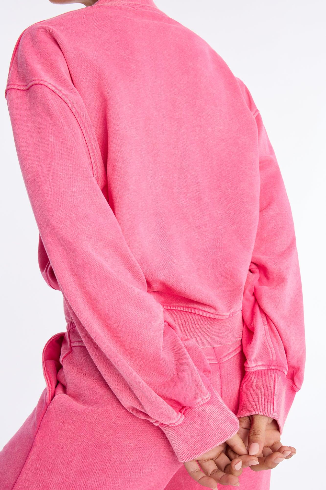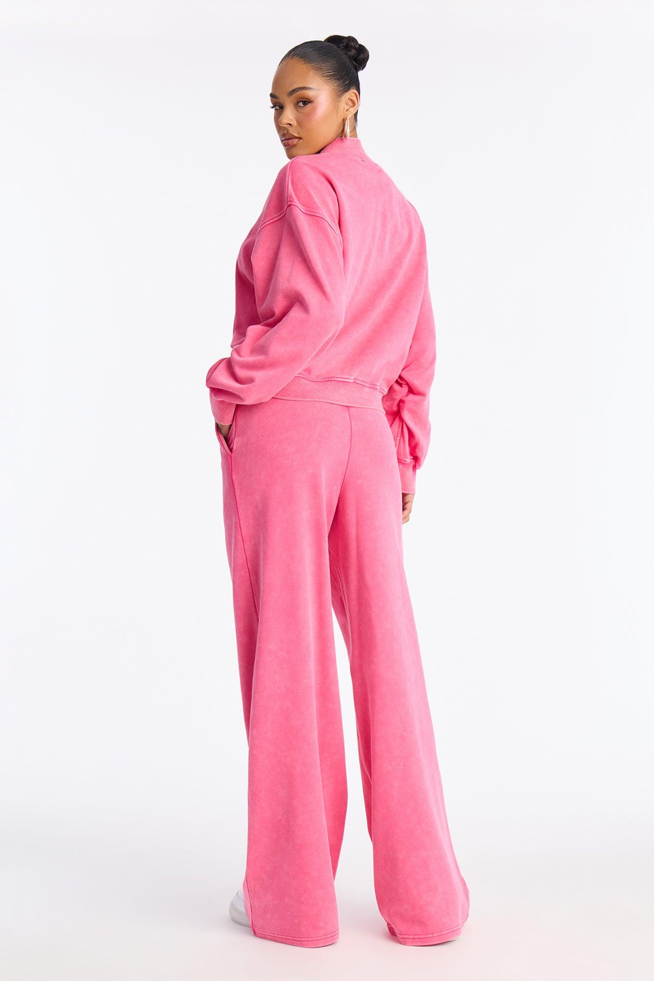 Available In Navy, Raspberry And Yellow. 2 Piece Ensemble Sweatshirt Crew Neck And Wide Leg Pant Set Stretch 33" Inseam Elastic Waistband With Drawstring Pockets Disclaimer: Due To The Specialized Wash Process, Each Garment Is Unique. Self: 85% Cotton 15% Polyester Imported