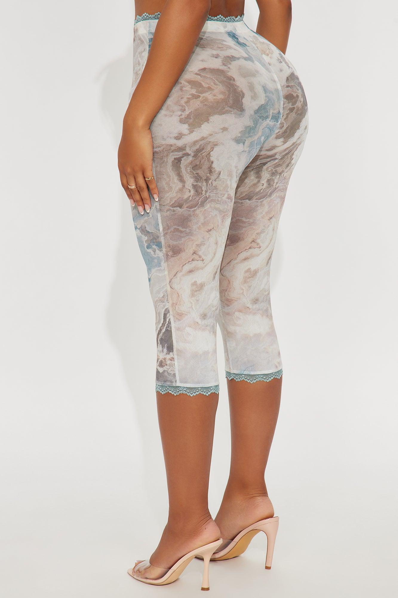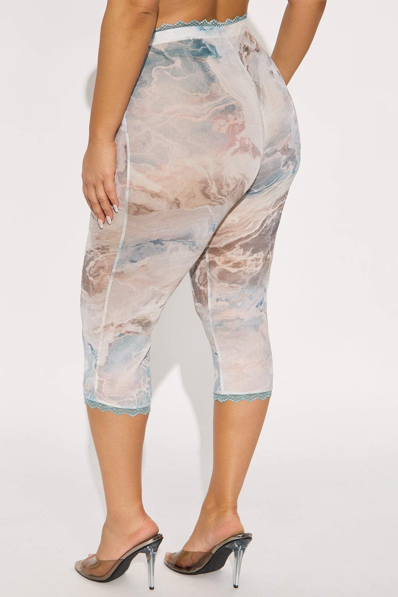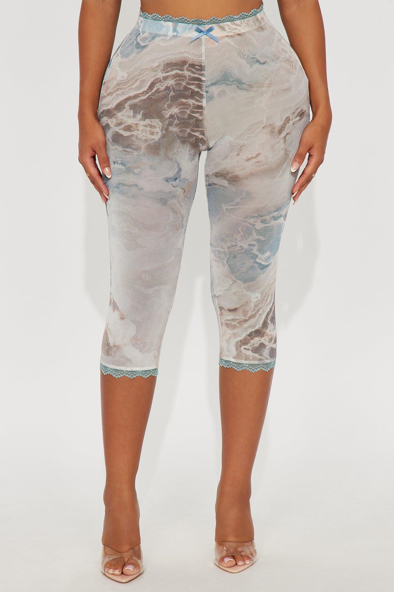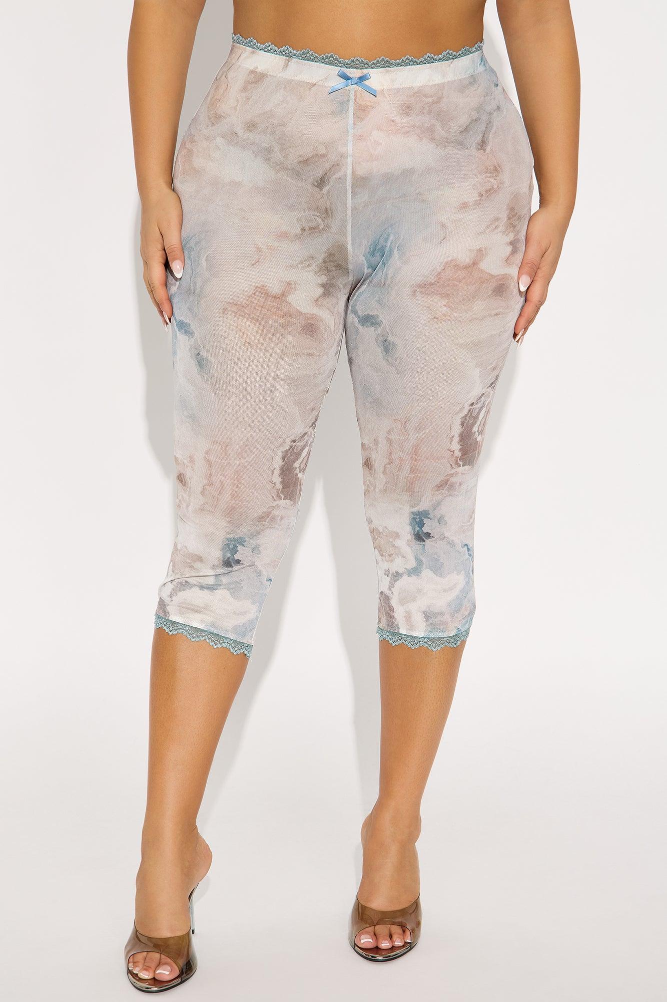 Available In Blue/combo And Green/combo. Mesh Capri Legging Stretch Cropped 19" Inseam High Rise Elastic Waistband Lace Trim Bow Applique Sheer Disclaimer: Print Placement May Vary Self: 95% Polyester 5% Spandex Imported California Proposition 65WARNING: Cancer and Reproductive Harm - www.P65Warnings.ca.gov.