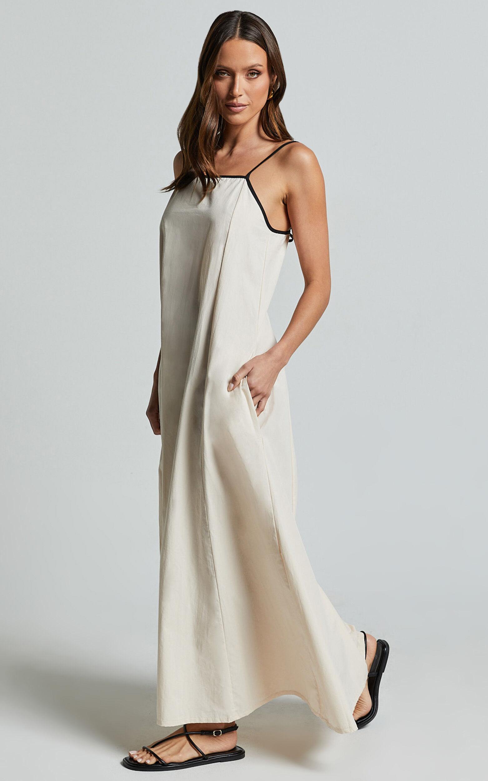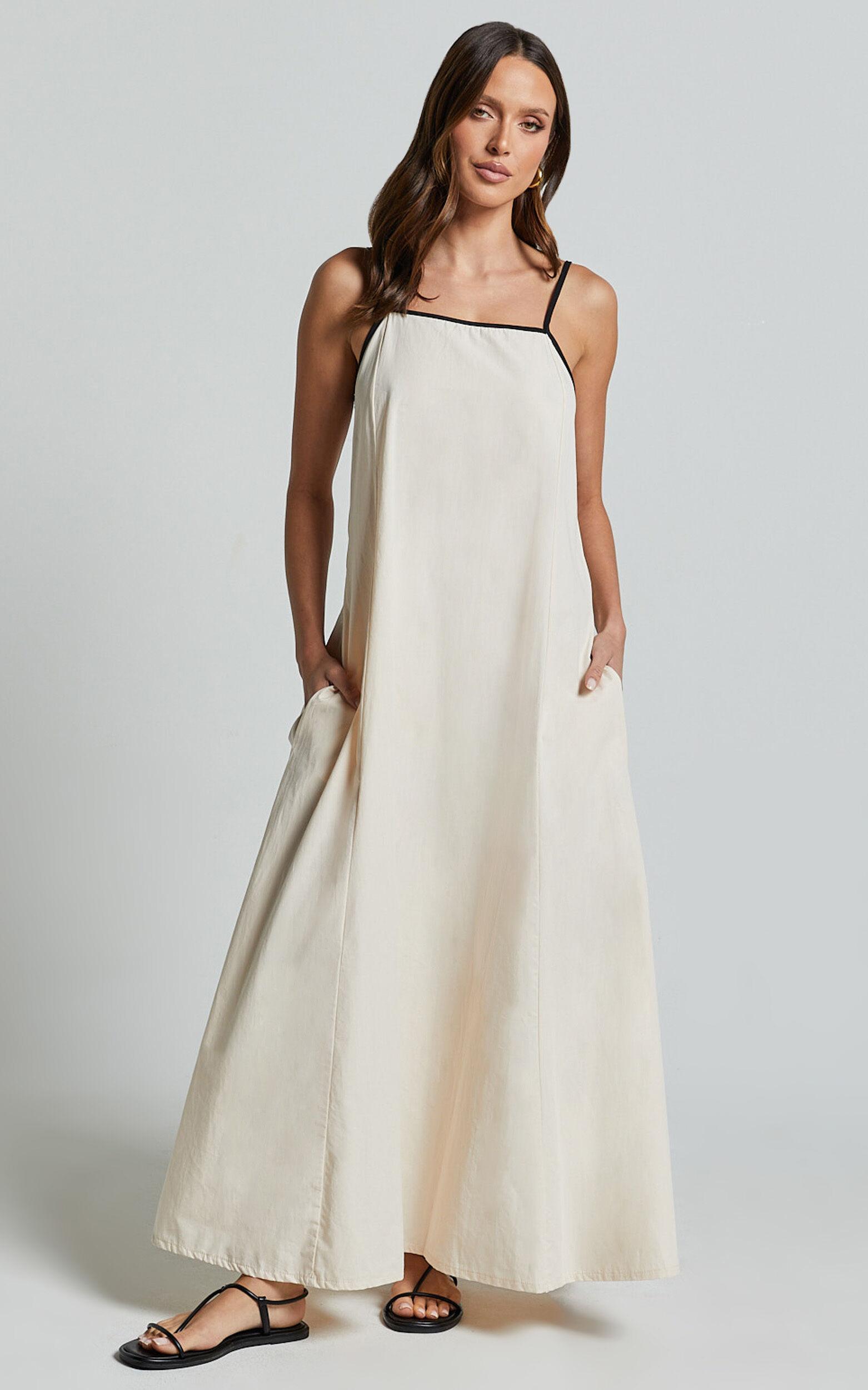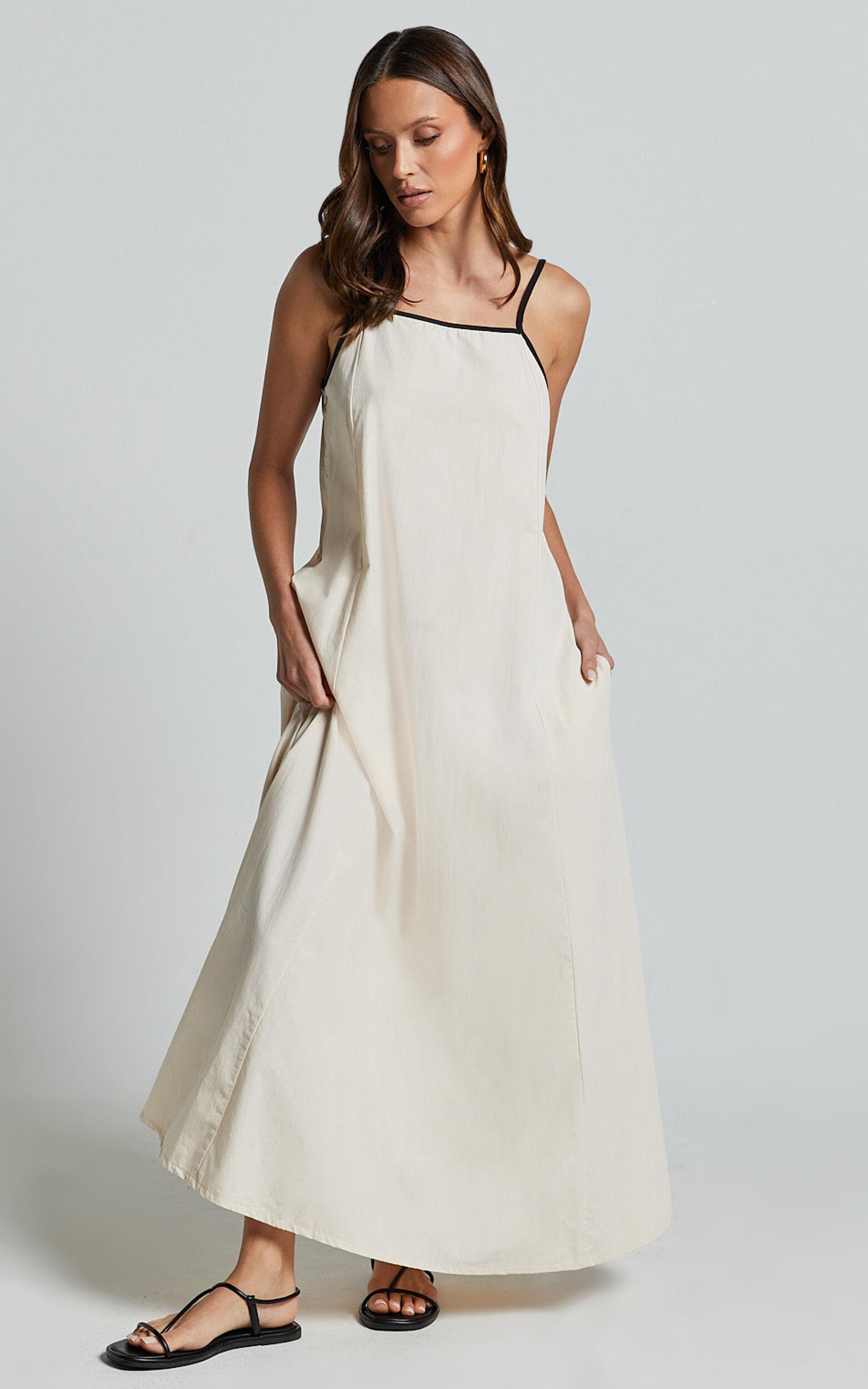 Get ready to turn heads in the Angelina Midi Dress. This stunning A-line dress features a straight neck and sleeveless design, making it perfect for both casual outings and special occasions. Made from 100% cotton, this dress is not only comfortable but also breathable - keeping you cool all day long. The natural color adds a touch of elegance to your ensemble, while the midi length adds sophistication. Embrace your inner fashionista with this versatile piece that can be dressed up or down to suit any occasion.Product Details:A Line DressCotton FabricStraight NecklineCasual WearMidi LengthSleevelessMaterial and CareCottonLow / No stretchNatural FibresThe main fabric of this product is made from 100% Natural Fibres. Whilst some of these fibres still have detrimental impacts in their supply chain, Natural Fibres have a reduced overall impact compared to a raw polyester.