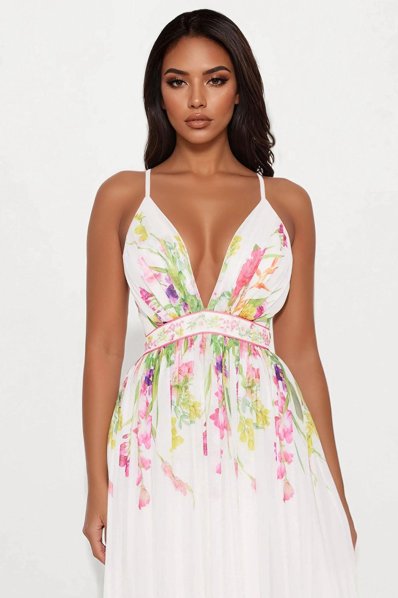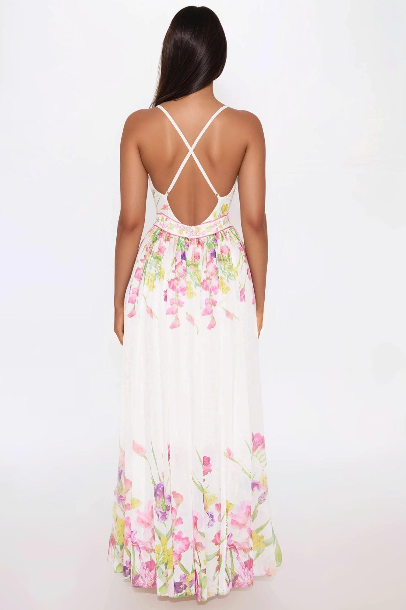 Available In Off White/combo. Printed Mesh Maxi Dress Adjustable Spaghetti Straps V-Neckline X Back Hidden Back Zipper Lined Stretch Disclaimer: Print Placement May Vary Self: 95% Polyester 5% Spandex Lining / Contrast: 100% Polyester Imported