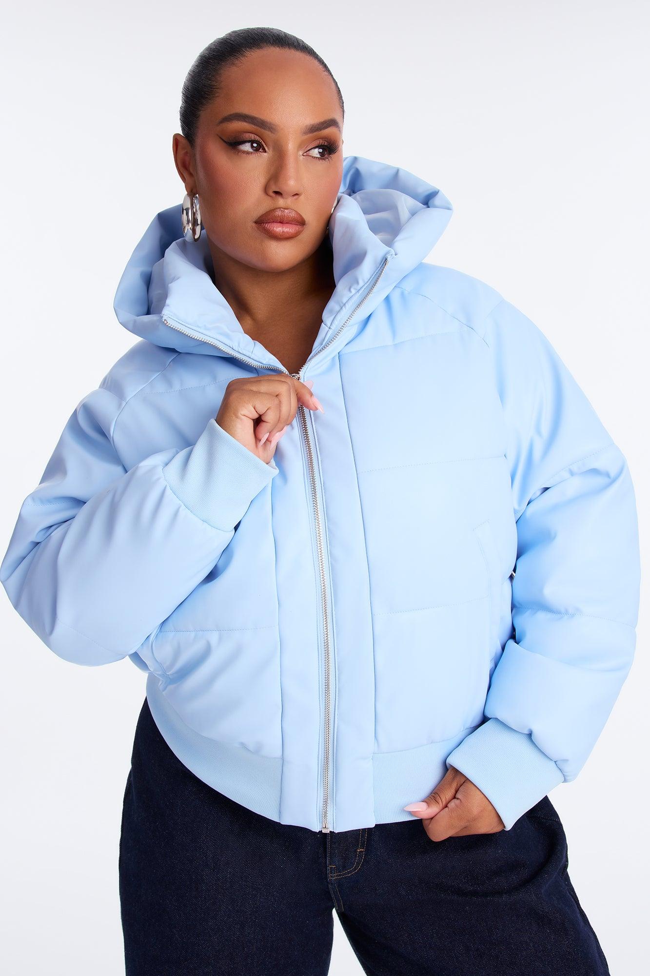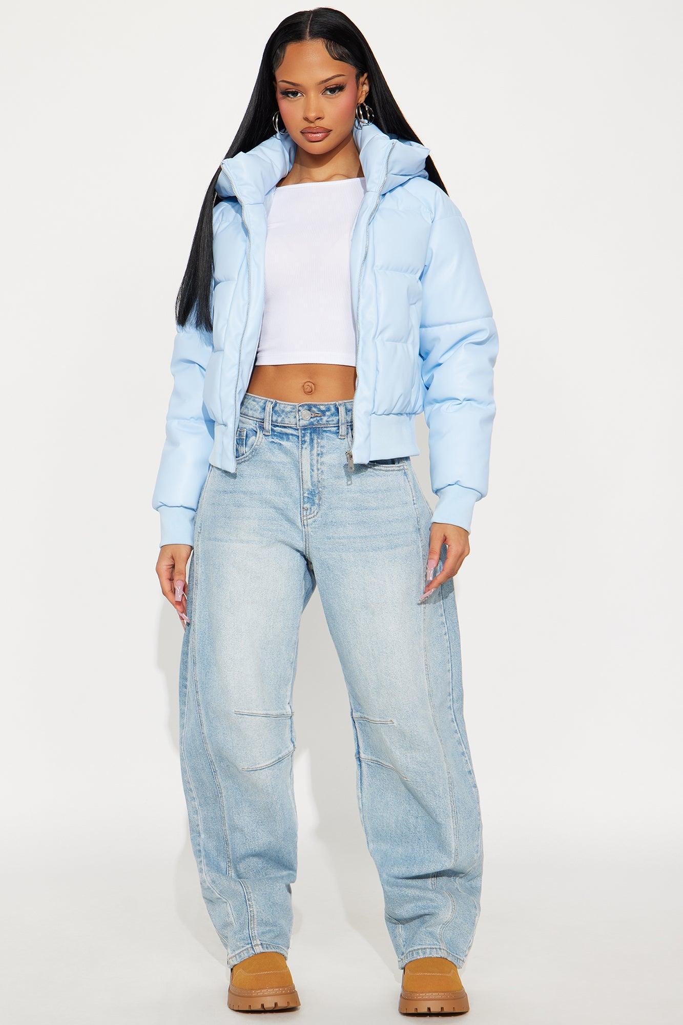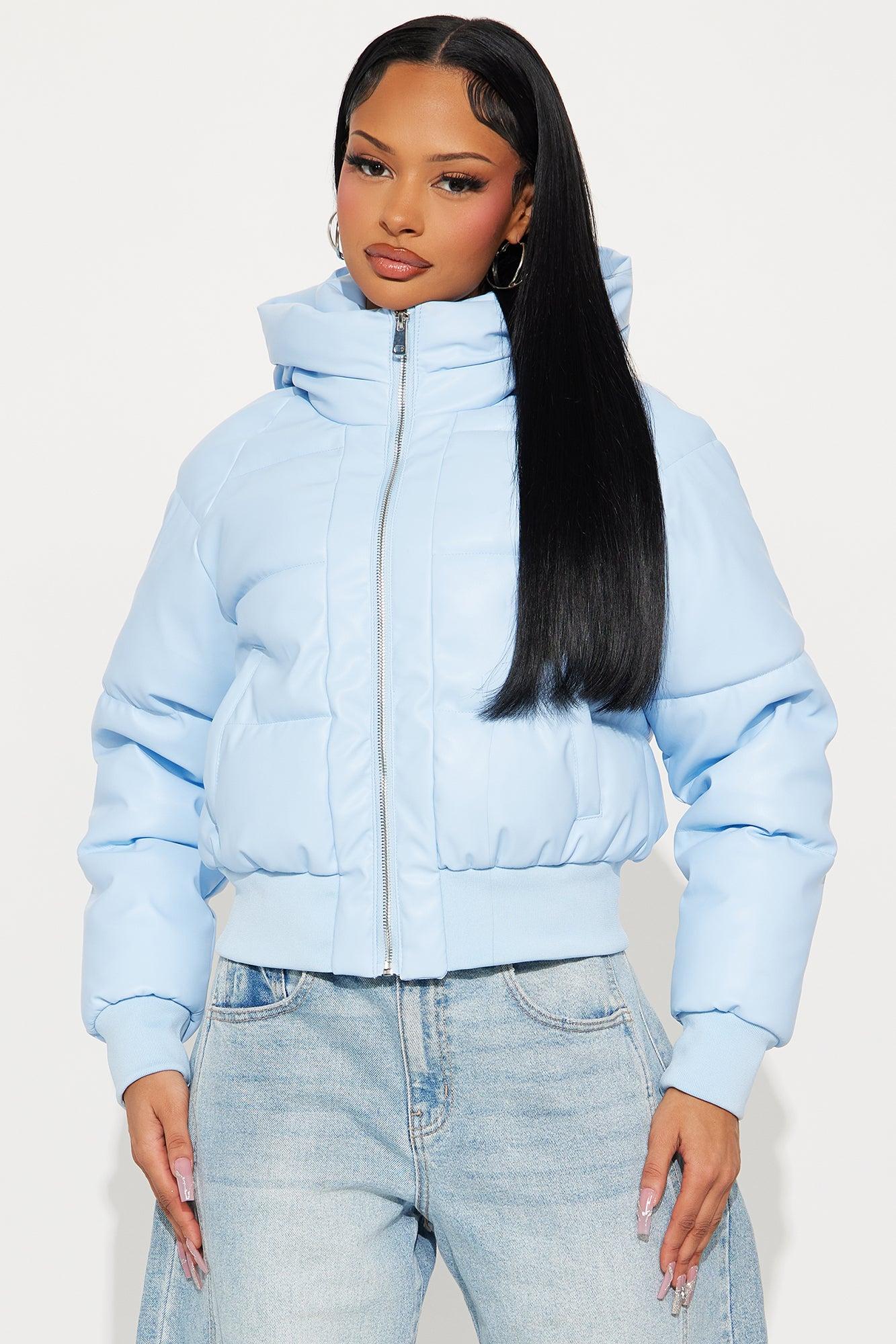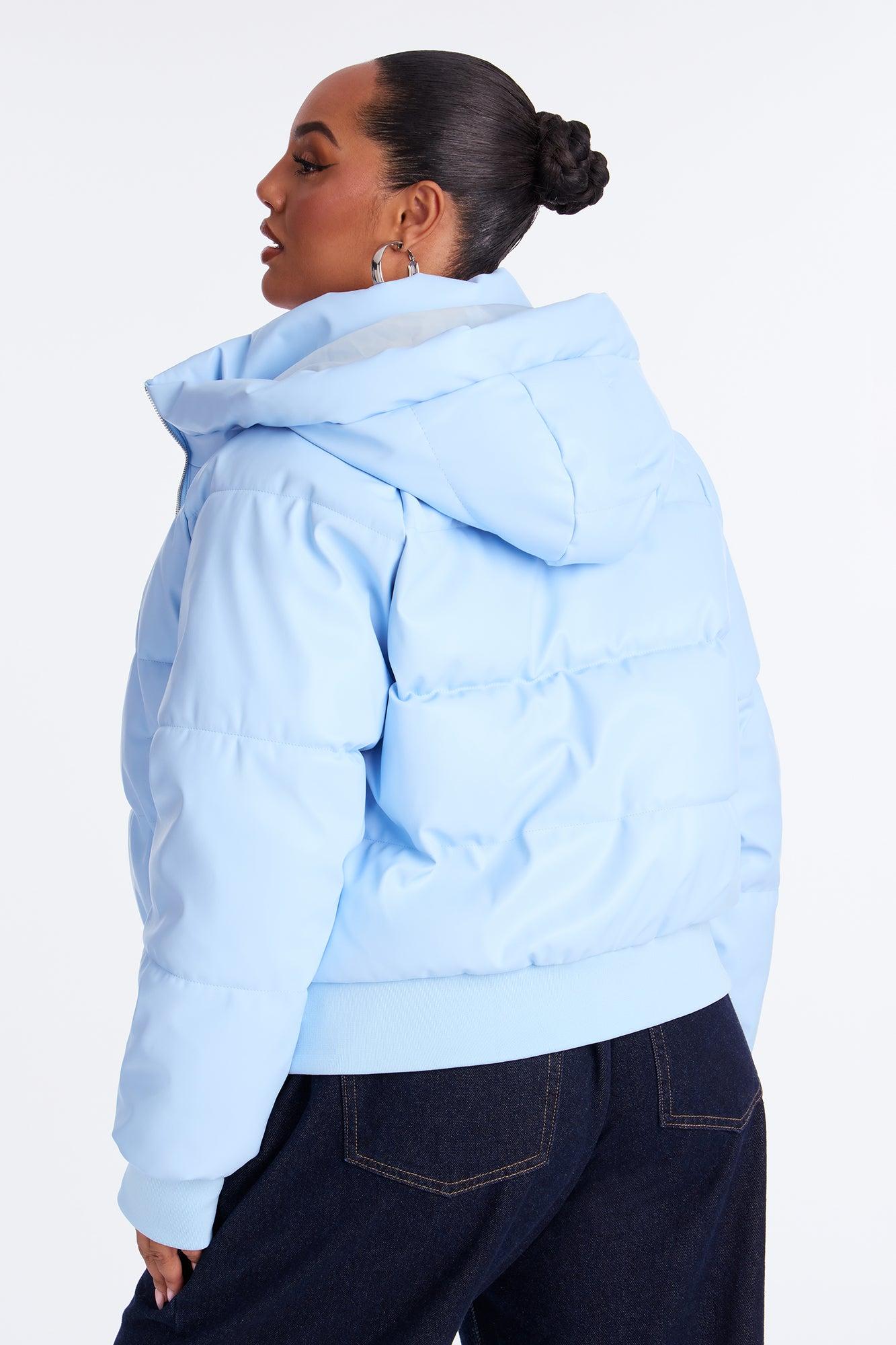 Angella Hooded Faux Leather Puffer - Light Blue Female