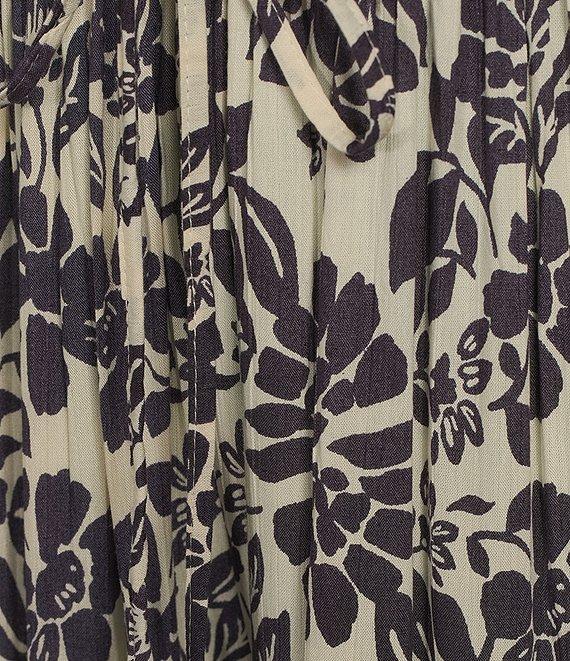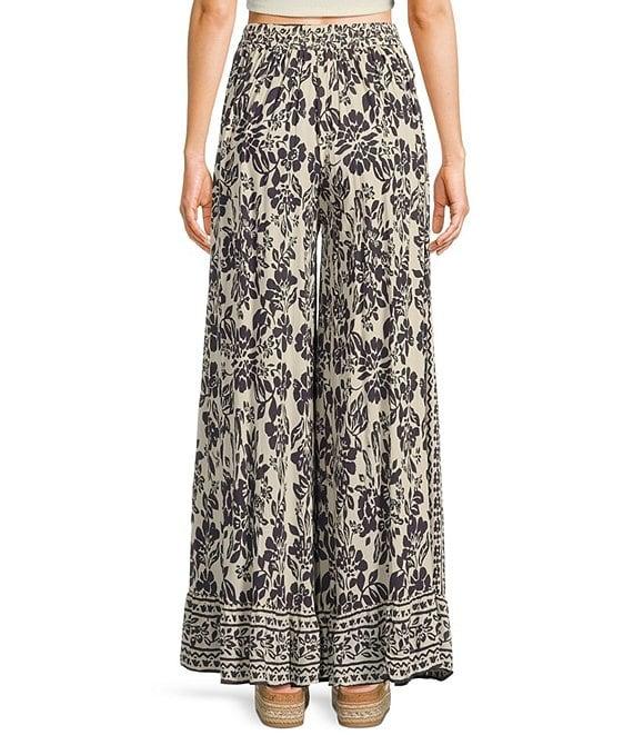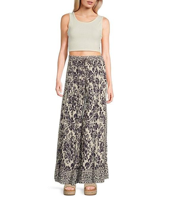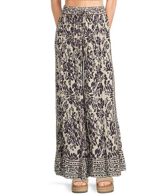 Angie Floral Print Flat Front Wide Leg Ruffle Hem Pants