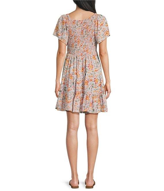 Angie Floral Printed Short Flutter Sleeve V-Neck Smocked Tiered Dress