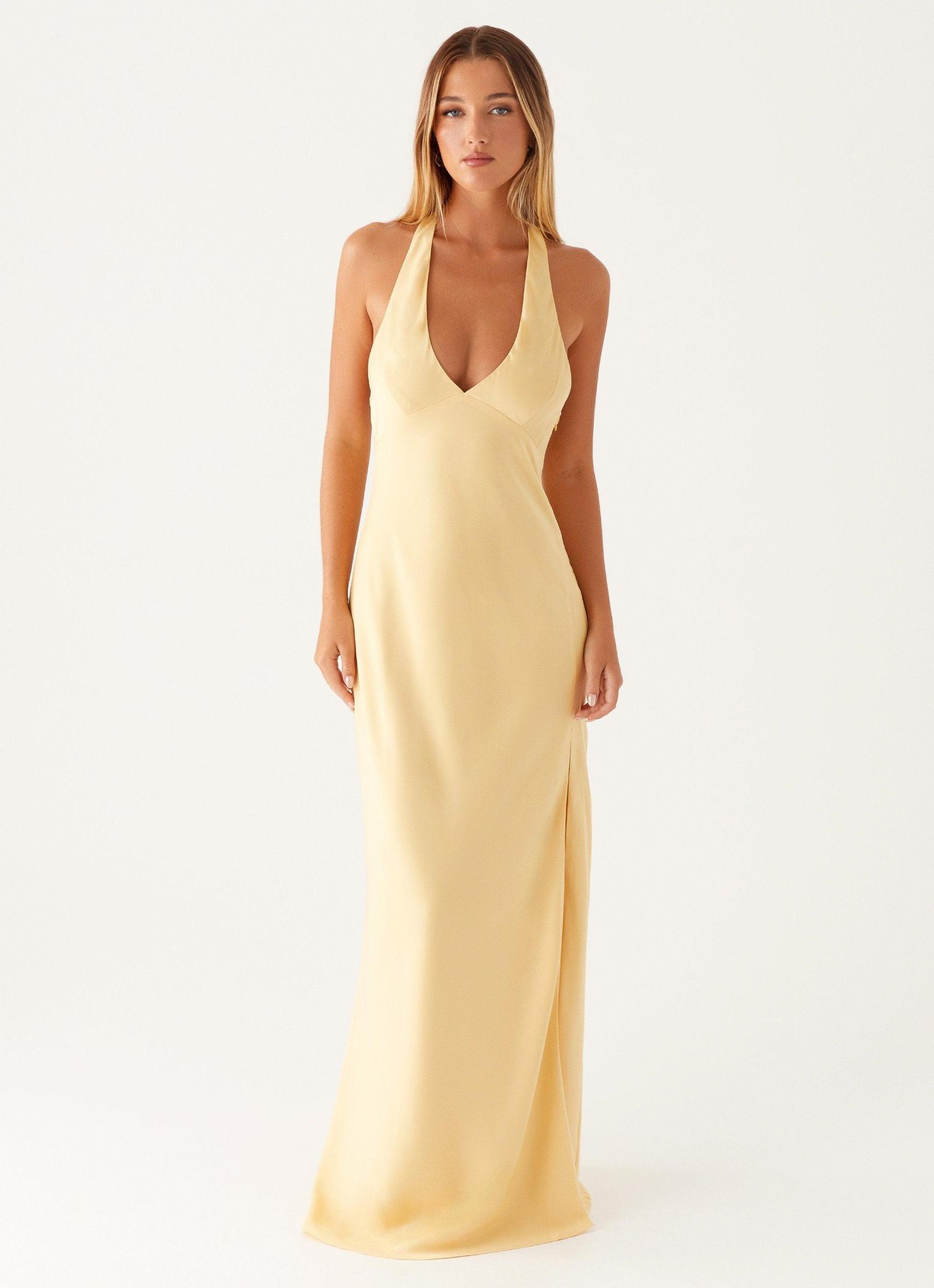Peppermayo Exclusive The Angie Maxi Dress is effortlessly alluring. Featuring a rounded neckline, bustier detailing, and an open back, it’s made for golden skies and nights filled with unforgettable elegance. - Maxi length- Rounded neckline- Bustier detailing- Print placement will differ per garment- Open back- Back thin adjustable strap- Side hook and eye, invisible zipper- Fully lined- Satin material Size AU 8 / US 4 garment measurements: Length: 118 cm / 46.5 inBust: 72 cm / 28.3 inWaist: 70 cm / 27.6 inHip: 92 cm / 36.2 in Yasmin is 178cm and wearing a size AU 6 / and US 2