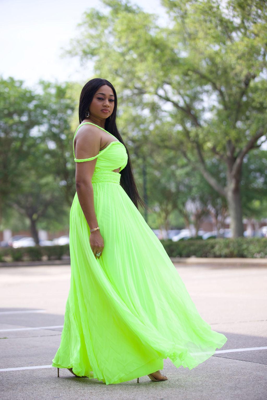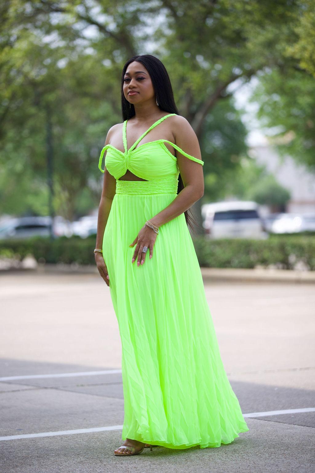 Silvana Maxi Dress - Halter Ruched Side Split Dress in Citrus