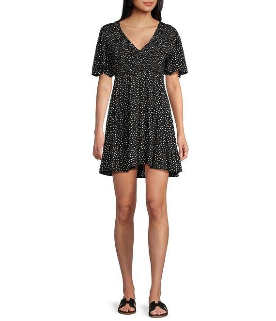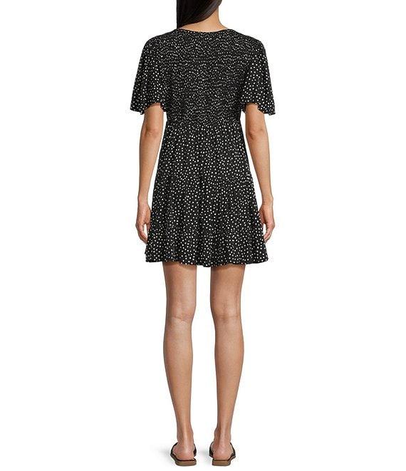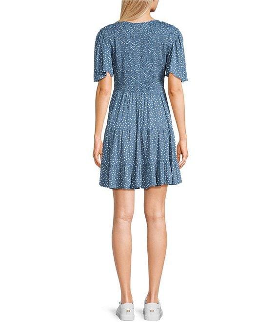 Angie Polka-Dot Print V-Neck Short Sleeve Tiered Dress
