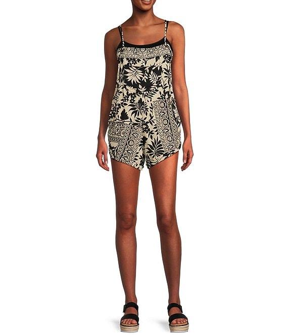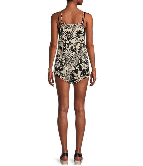 Angie Sleeveless Spaghetti Strap Tropical Patch Printed Romper