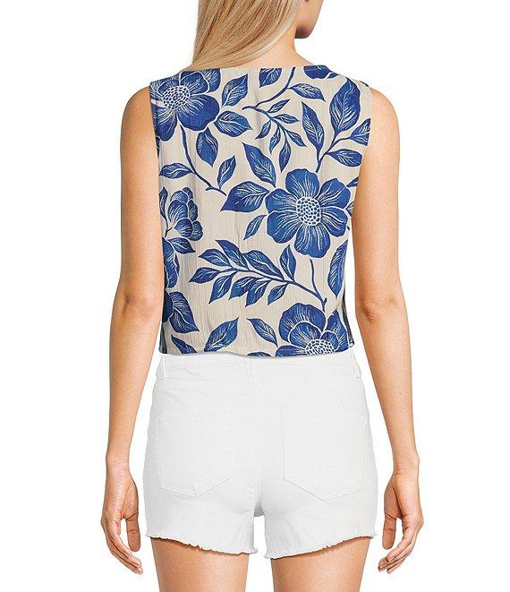 Angie Sleeveless V-Neck Floral Print Triple Tie Top