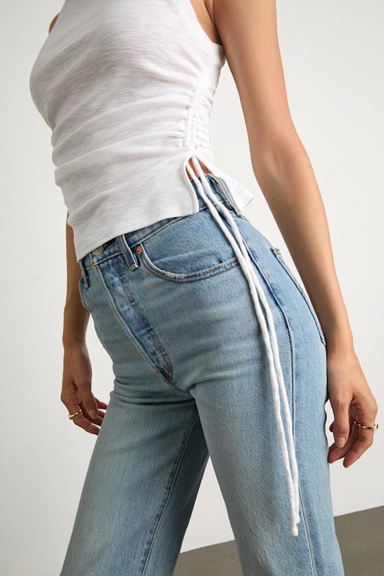 Casually cute and never basic, this jersey knit tank top is a pro at creating trendy outfits that require minimal effort and receive maximum compliments. A burnout effect sweeps across the fitted silhouette, featuring a crew neckline, a cropped hem, and tying drawstring details at the sides for a chic ruched look.