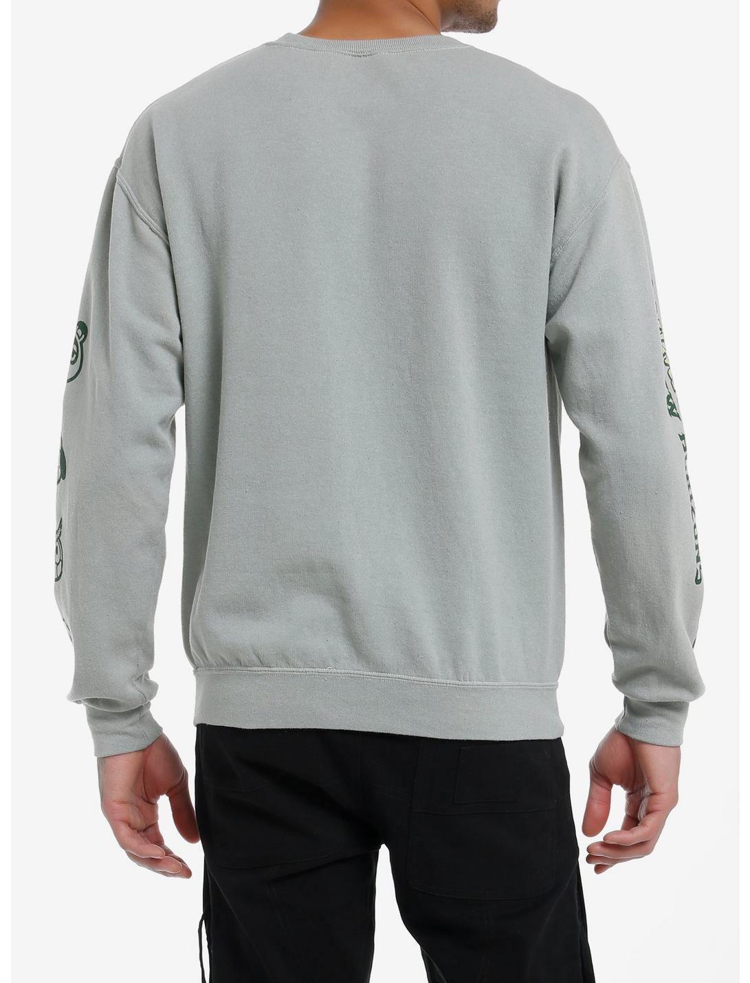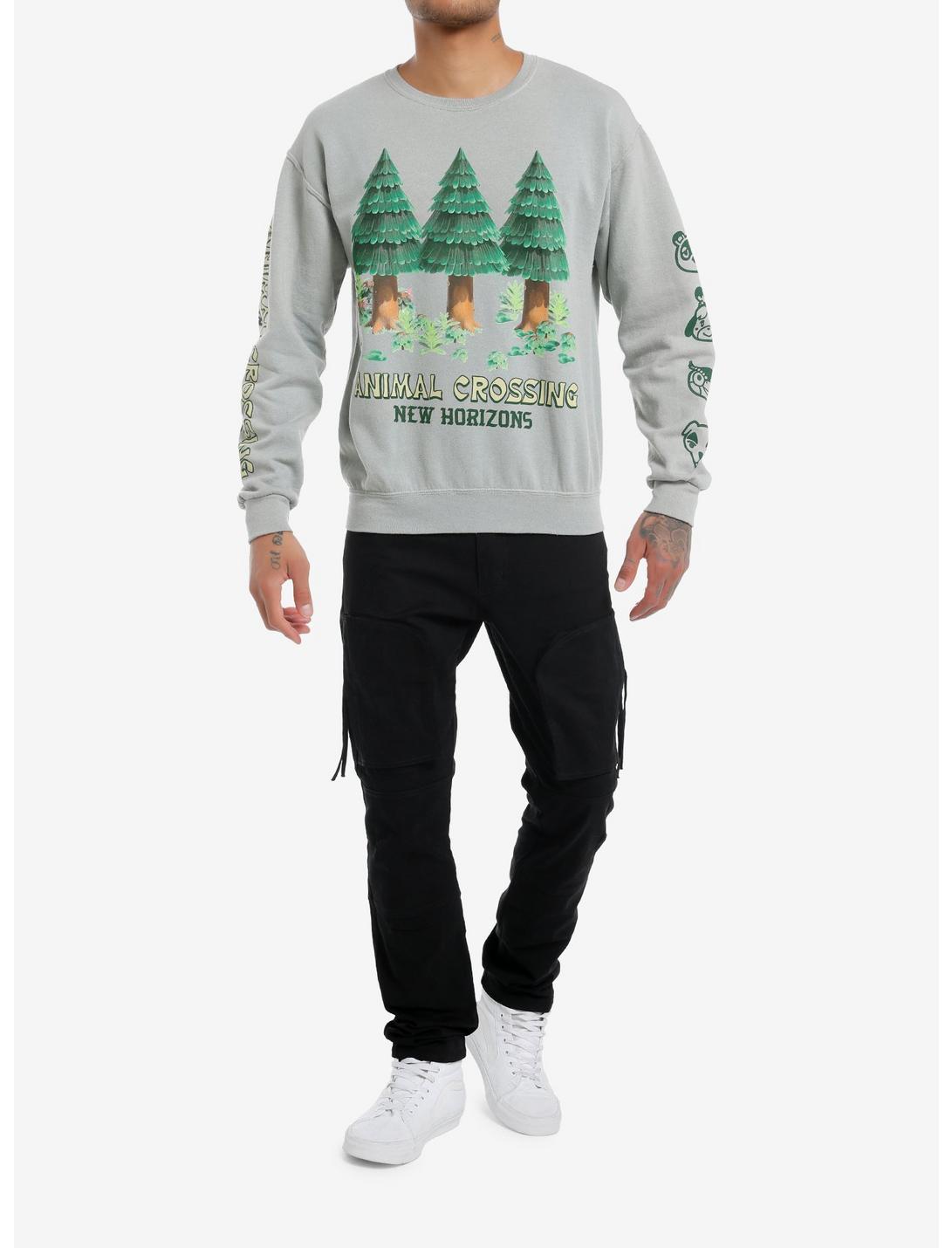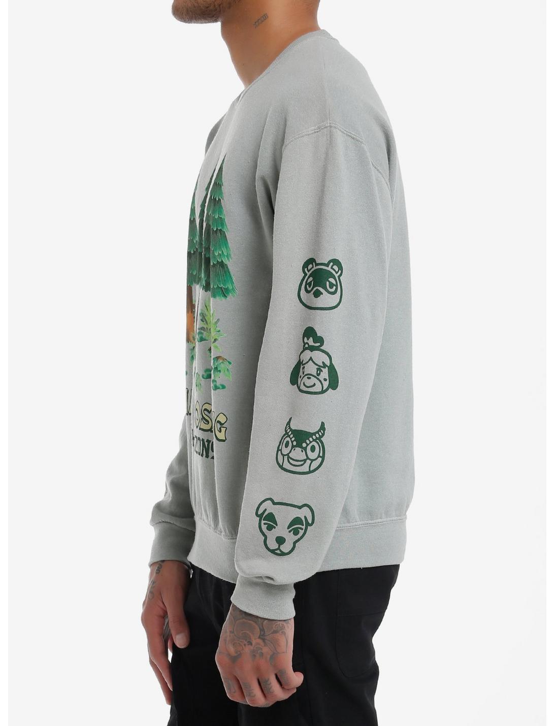 Get to gardening in your island with this sweatshirt on! This crewneck sweater from Animal Crossing: New Horizons features cedar trees from the game on the front and the game title on one sleeve, plus characters printed down the other sleeve: Tom Nook, Isabelle, Blathers and K.K. Slider!50% cotton; 50% polyesterWash cold; dry lowImportedListed in men's/unisex sizesModel is 6'1"Model wears size Medium