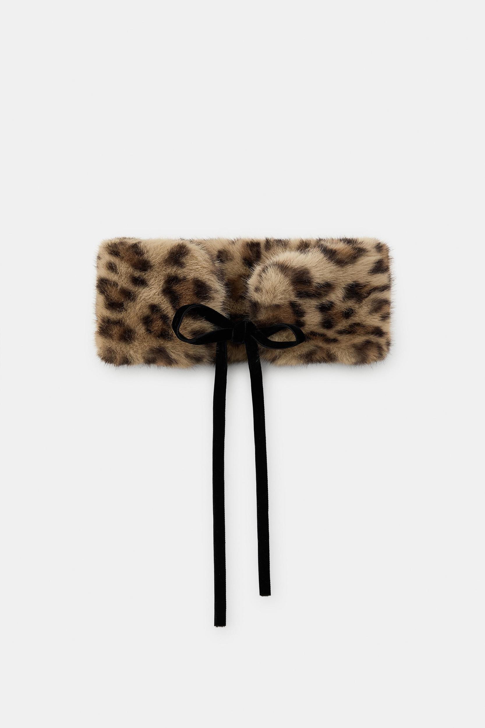ANIMAL PRINT FAUX FUR NECK WARMER